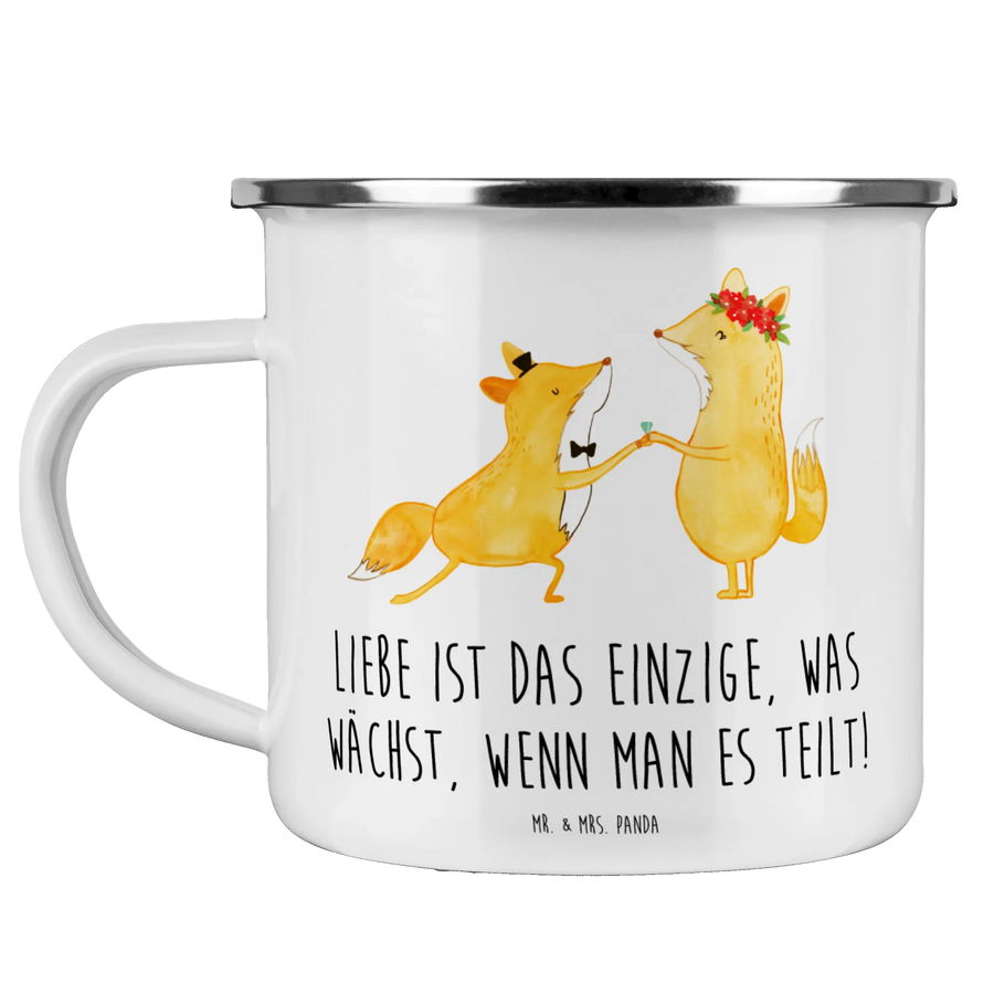 Du suchst nach dem perfekten Geschenk für das Brautpaar oder für deine besten Freunde, die gerade heiraten? Unsere wunderschöne Camping Emaille Tasse mit dem liebevollen Motiv Eheversprechen aus der zauberhaften Hochzeitskollektion von Mr. & Mrs. Panda ist genau das Richtige!