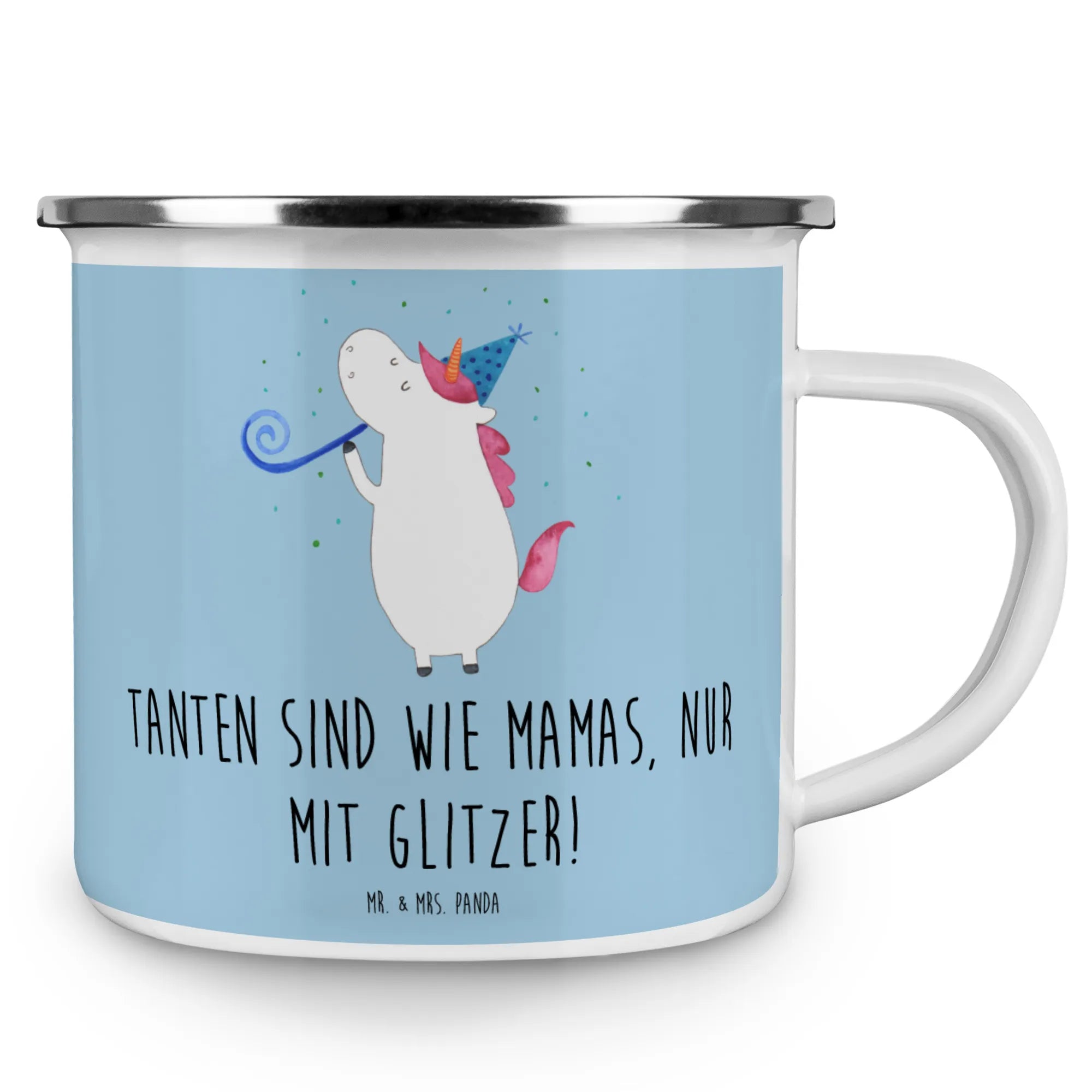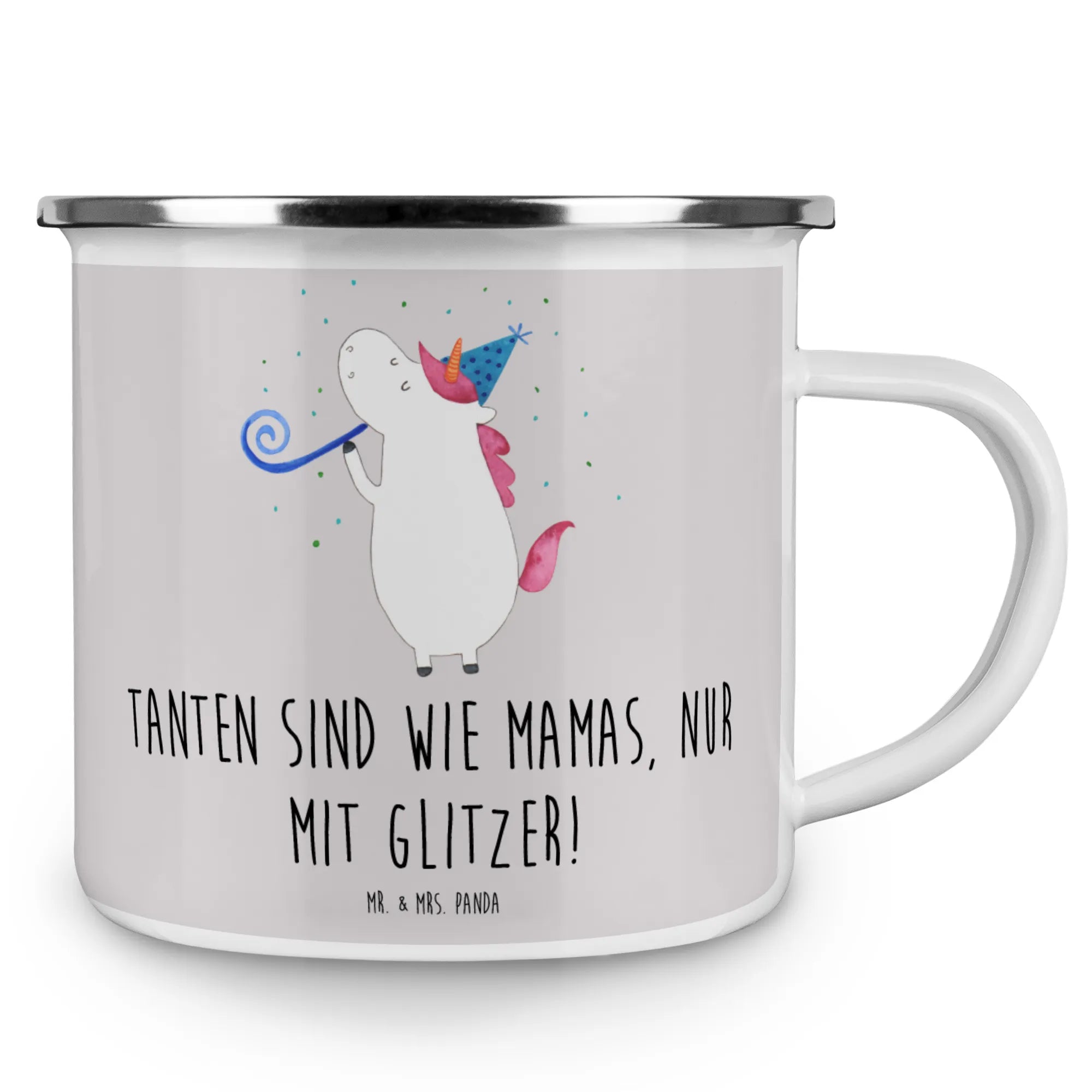 Die Camping Emaille Tasse "Tante" von Mr. & Mrs. Panda ist das perfekte Geschenk für jede Tante, die einen besonderen Platz in Deinem Herzen hat. Mit einem charmanten Spruch wie "Tanten sind wie Mamas, nur mit Glitzer!" feierst Du die einzigartige Rolle, die Tanten in der Familie spielen. Diese wunderschöne und beständige Metalltasse ist nicht nur praktisch, sondern auch ein liebevolles Mitbringsel, um Deiner Tante zu zeigen, wie viel sie Dir bedeutet.