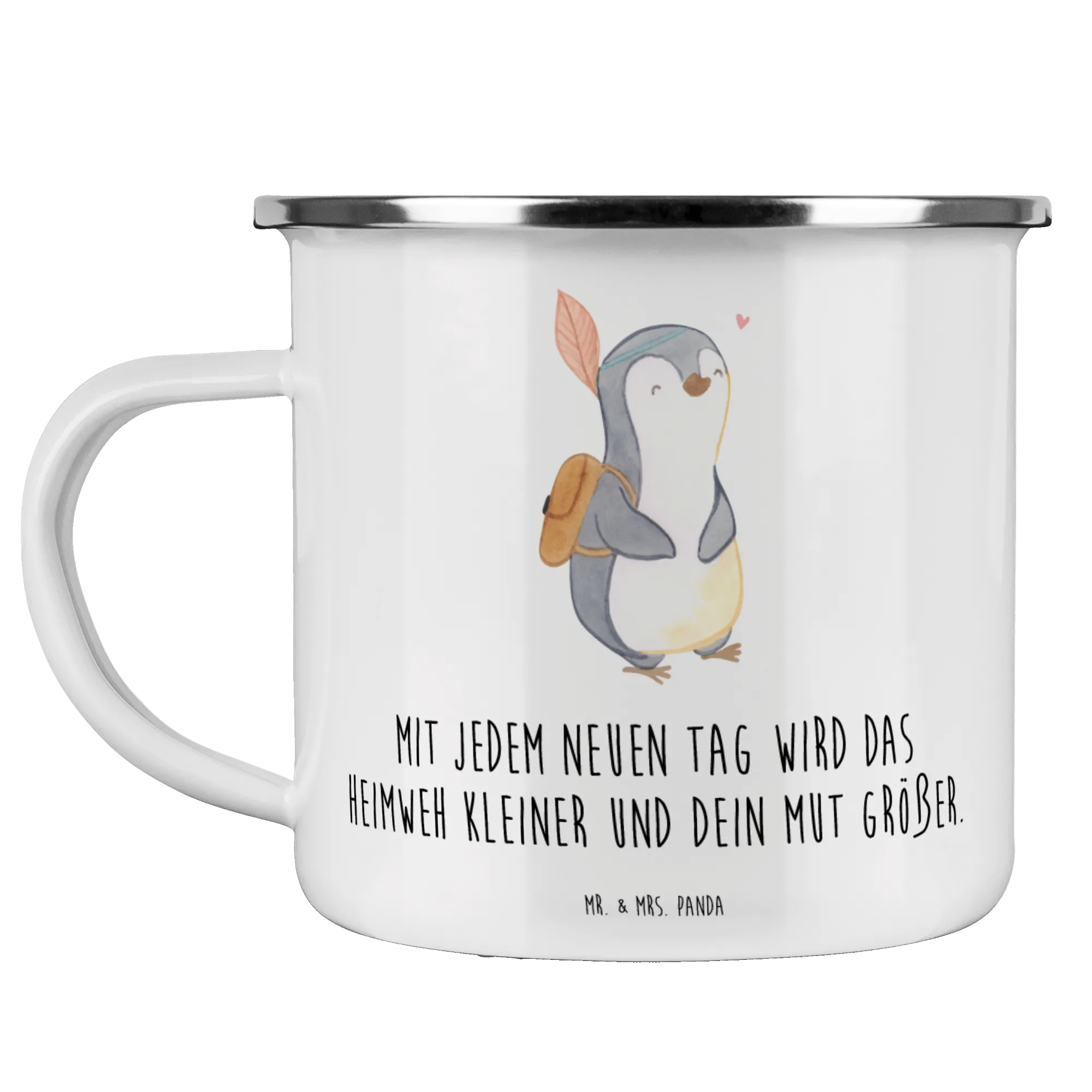 Die Camping Emaille Tasse 'Heimweh überwinden' von Mr. & Mrs. Panda ist das perfekte Geschenk für alle, die Natur, Abenteuer und eine gute Tasse Kaffee lieben. Sie symbolisiert nicht nur den Mut, neue Wege zu gehen, sondern bietet auch Trost und Zuversicht, wenn das Heimweh stark wird.