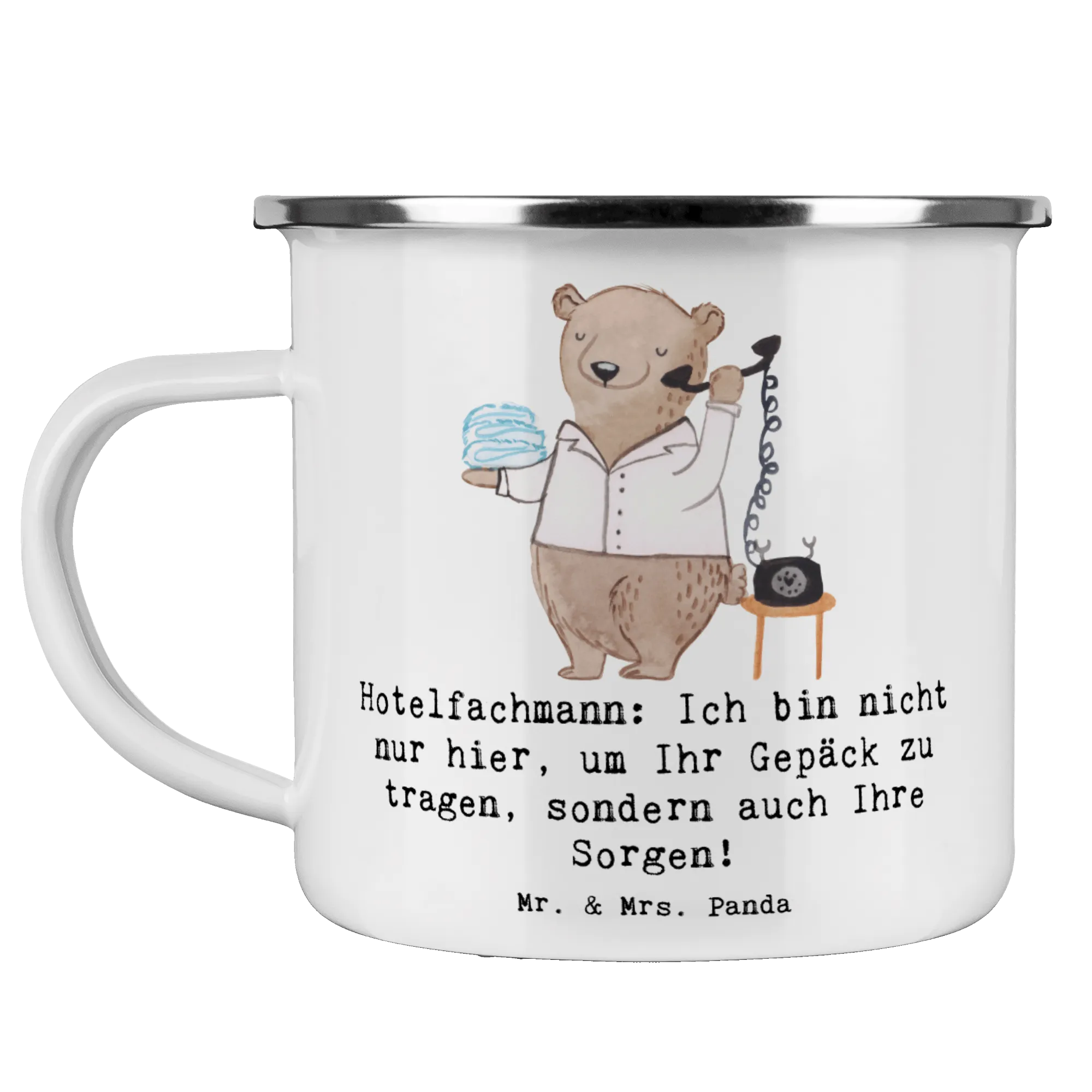 Camping Emaille Tasse Hotelfachmann: Ich bin nicht nur hier, um Ihr Gepäck zu tragen, sondern auch Ihre Sorgen! - Weiß