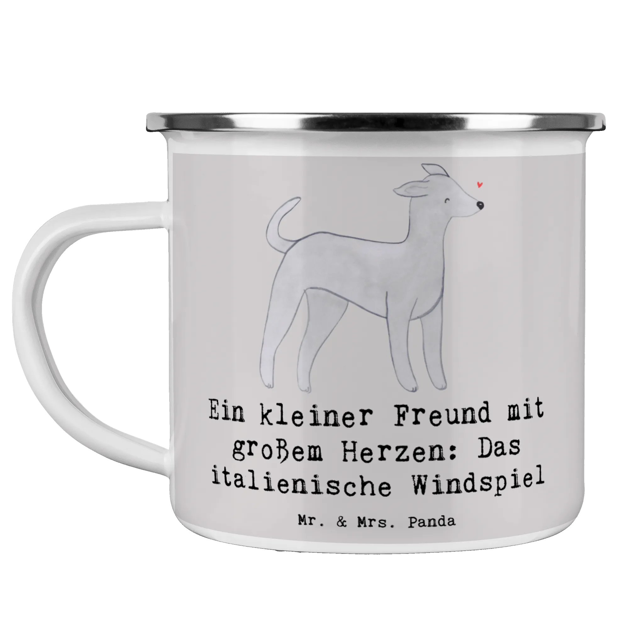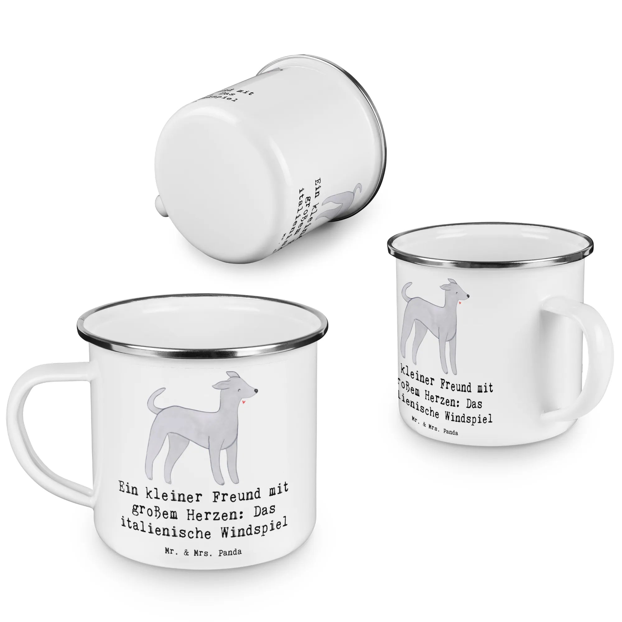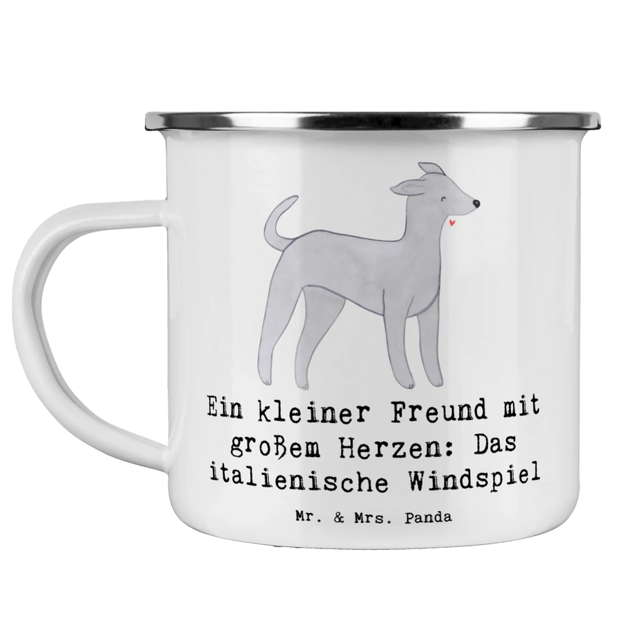 Die entzückende Camping Emaille Tasse mit dem Motiv "Italienisches Windspiel" von Mr. & Mrs. Panda ist das perfekte Geschenk für Hundefreunde und Outdoor-Enthusiasten. Diese Tasse verbindet utilitäre Funktionalität mit einem charmanten Design und ist ideal für alle, die gerne Zeit in der Natur verbringen.
