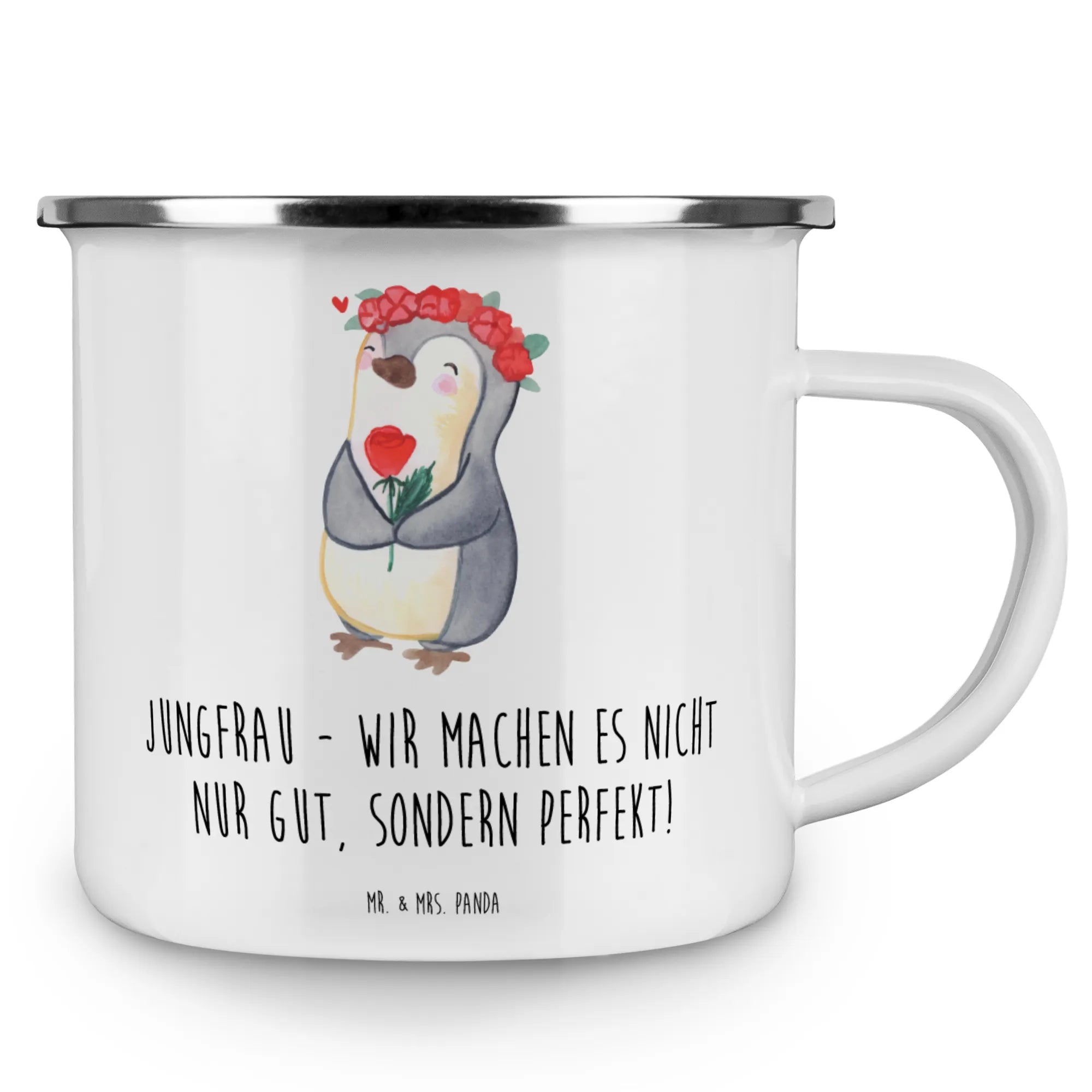 Die Camping Emaille Tasse "Jungfrau" von Mr. & Mrs. Panda ist das perfekte Geschenk für alle, die die Natur lieben und gleichzeitig Wert auf stilvolles Design legen. Mit einem ansprechenden Spruch, "Jungfrau - Wir machen es nicht nur gut, sondern perfekt!", wird diese Tasse nicht nur zum idealen Begleiter auf deinen Campingausflügen, sondern auch zu einem echten Hingucker. Ihre Maße von 80 mm x 80 mm und eine Füllmenge von 300 ml machen sie super praktisch für heiße und kalte Getränke.