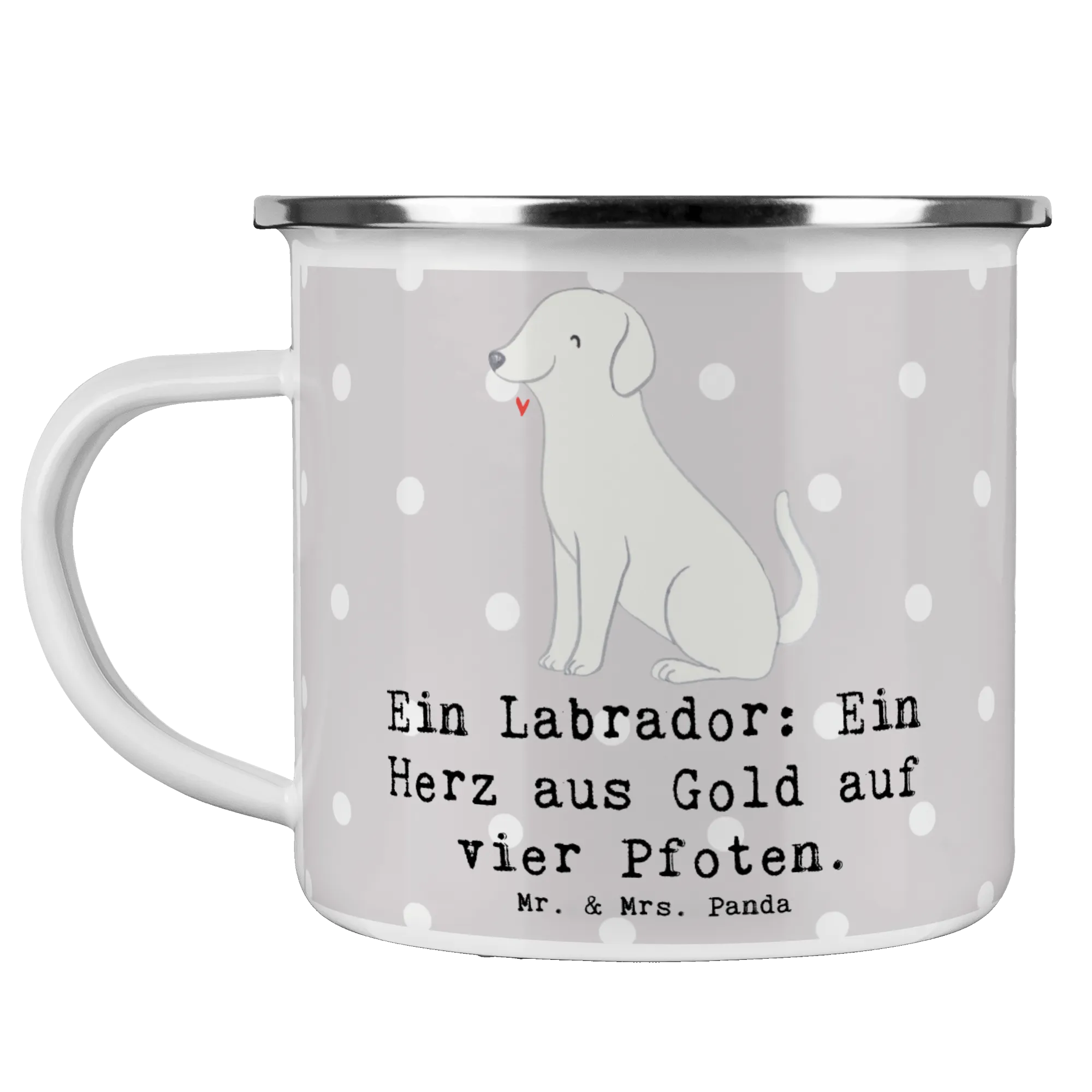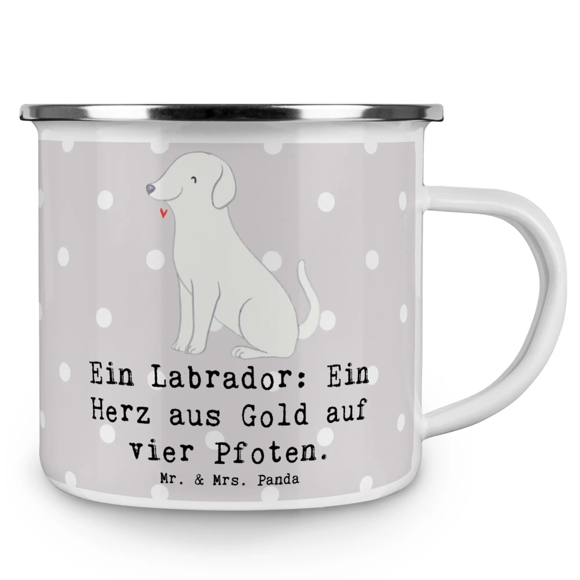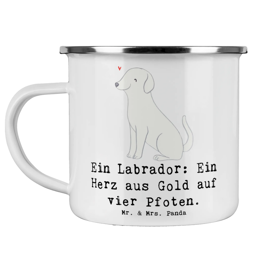 Die Camping Emaille Tasse mit dem süßen Labrador-Motiv aus der Hunderassen-Kollektion von Mr. & Mrs. Panda ist das perfekte Geschenk für alle Hundeliebhaber und Outdoor-Fans! Egal, ob beim Wandern, Campen oder einfach im Garten – diese Tasse wird schnell zum treuen Begleiter.