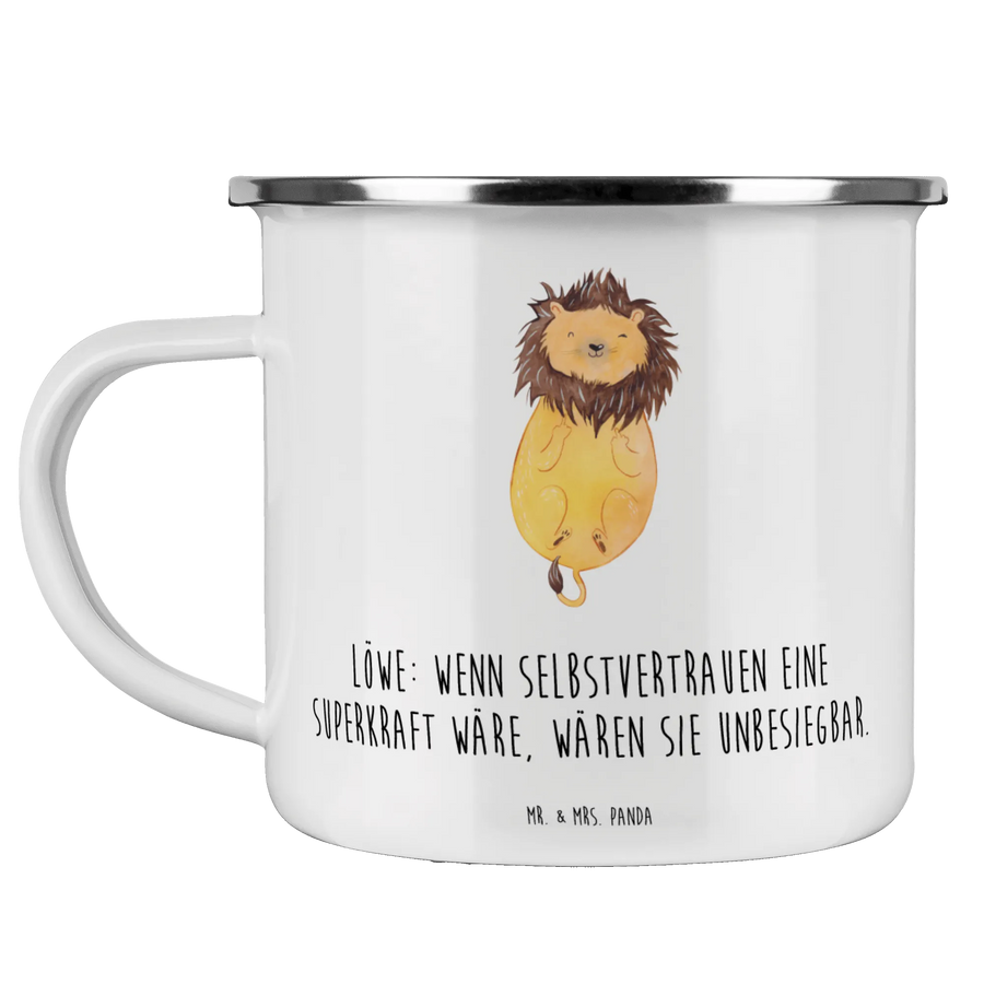 Die Camping Emaille Tasse „Löwe“ von Mr. & Mrs. Panda ist das perfekte Geschenk für alle, die die Natur lieben und gerne Zeit im Freien verbringen!