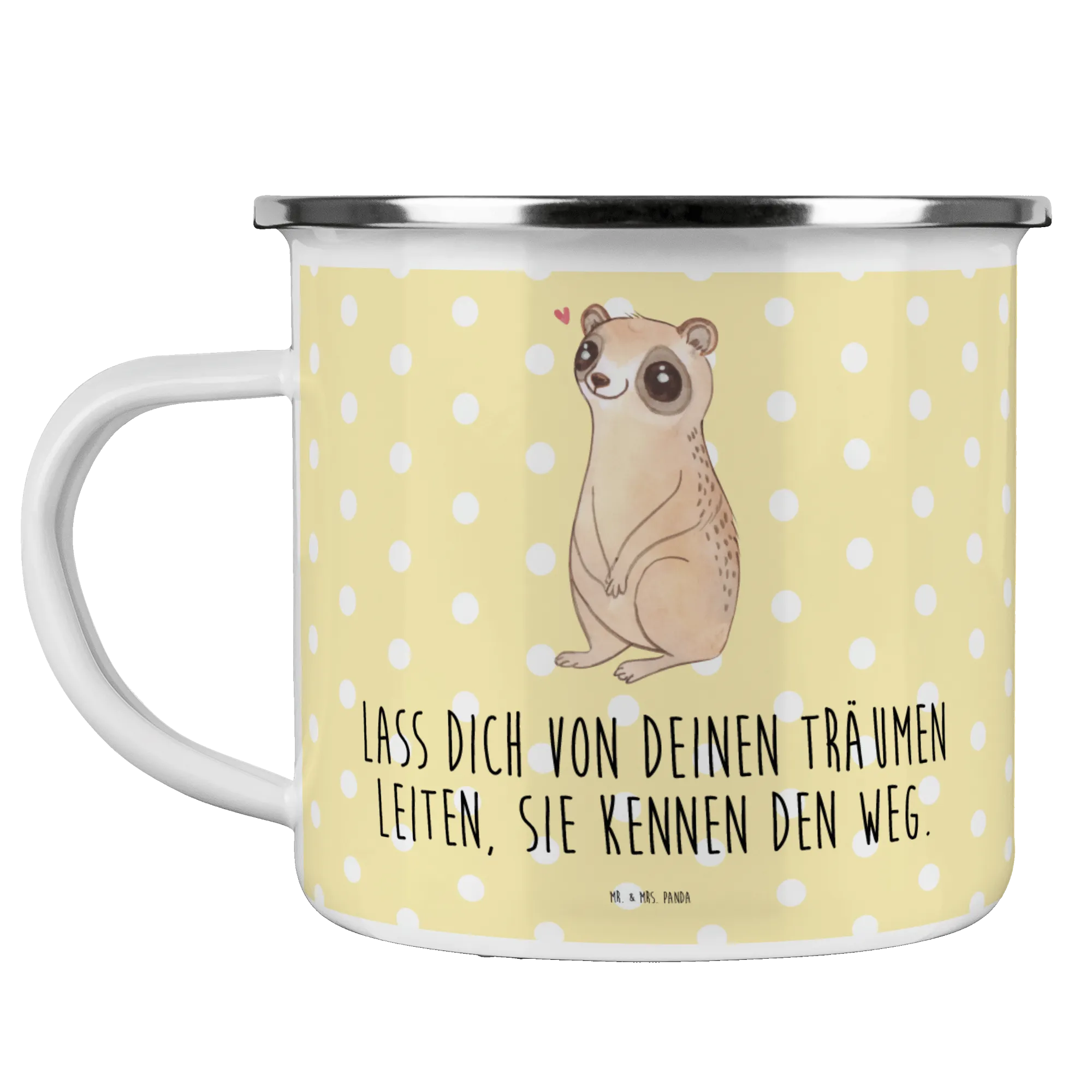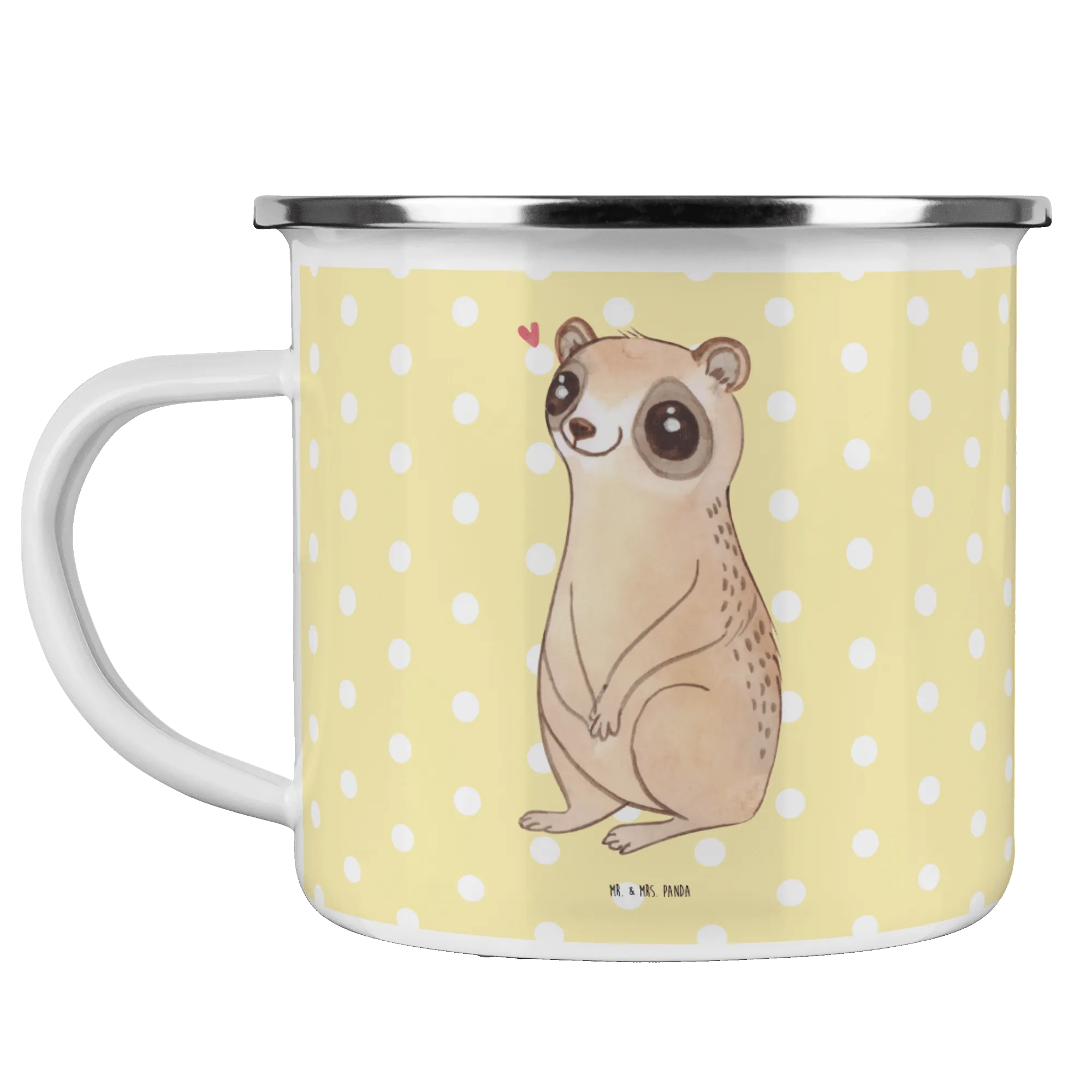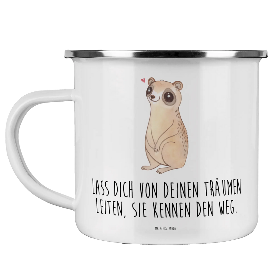 Hol Dir ein Stück gute Laune und Freude in die Natur und lasse den Plumplori Glücklich Dich begleiten, wo auch immer Du hingehst! Mit der Camping Emaille Tasse von Mr. & Mrs. Panda wird jeder Ausflug zum unvergesslichen Erlebnis.