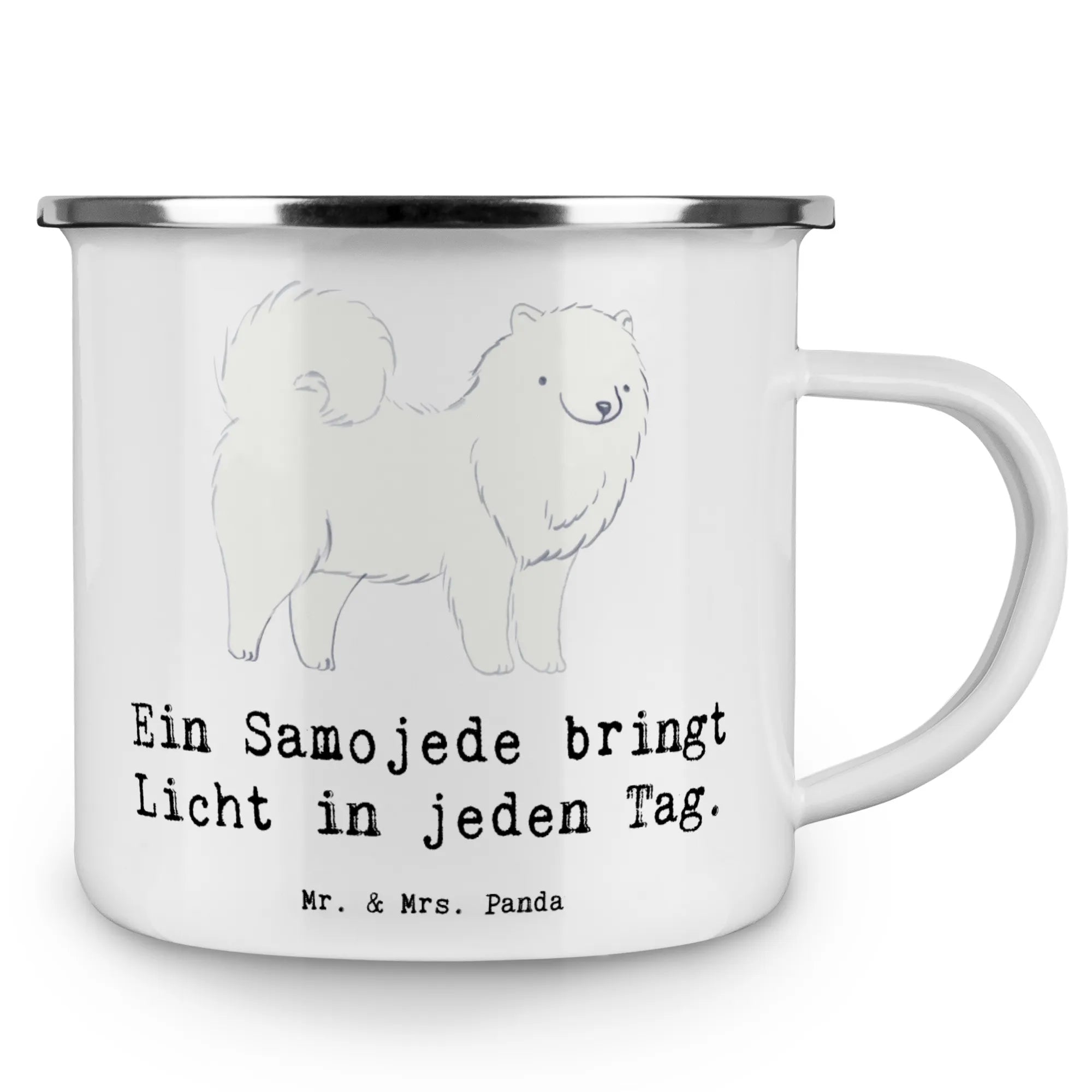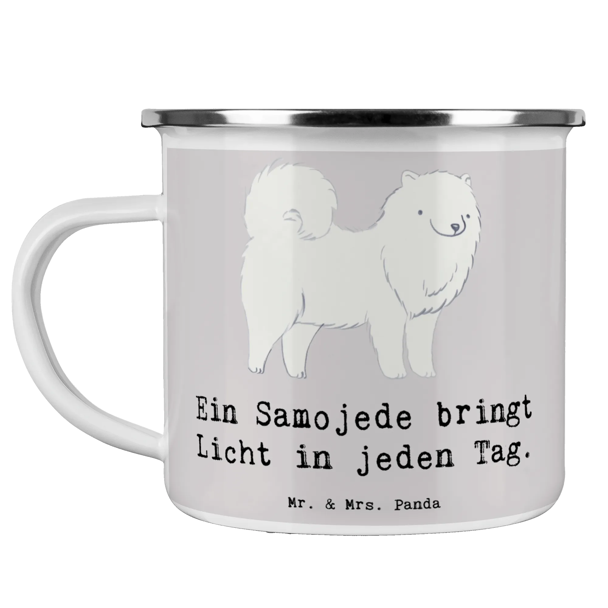 Die perfekte Camping Emaille Tasse mit dem niedlichen Samojede-Motiv von Mr. & Mrs. Panda ist nicht nur ein praktischer Begleiter für deine Outdoor-Abenteuer, sondern auch ein liebevolles Geschenk für alle Hundefans! Diese wunderschöne und beständige Emaille Tasse bringt Atmosphäre und Freude in jedes Camping-Erlebnis. Mit ihrem Slogan "Ein Samojede bringt Licht in jeden Tag." zaubert sie dir stets ein Lächeln ins Gesicht, egal ob beim Kaffee am Morgen oder beim Tee am Abend.