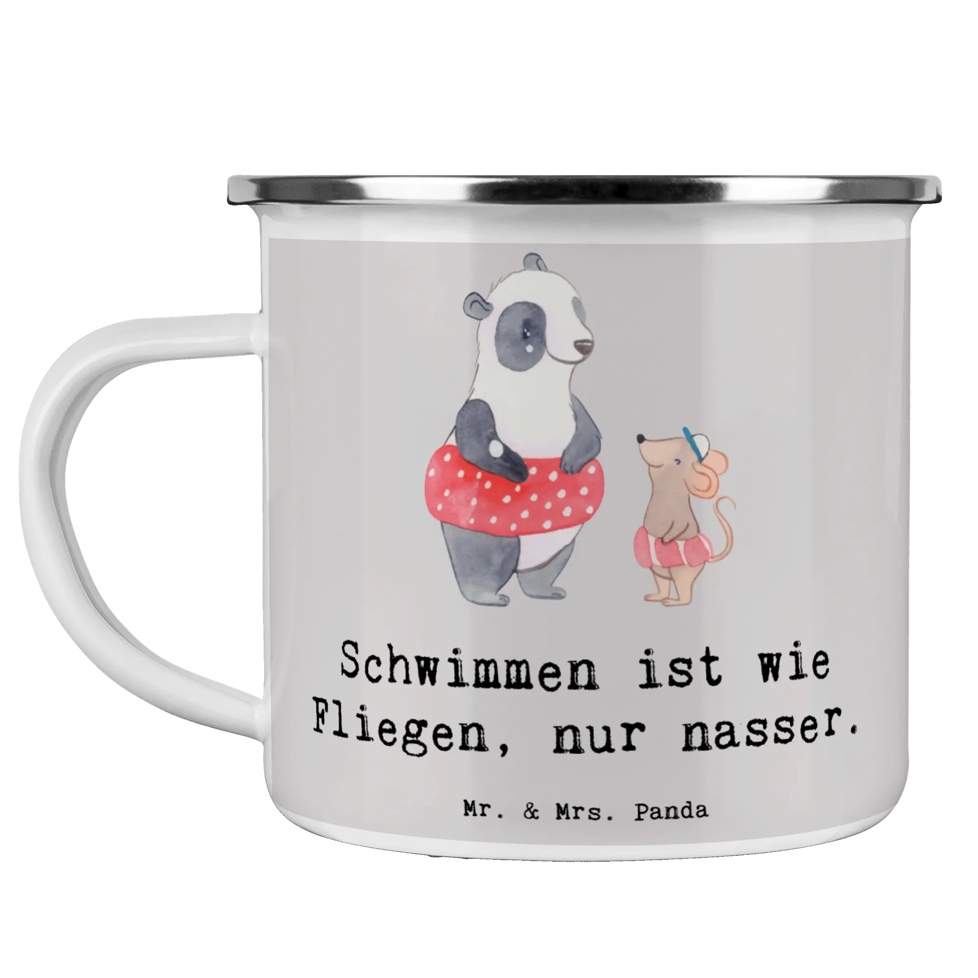 Camping Emaille Tasse Schwimmen wie Fliegen – Mr. & Mrs. Panda