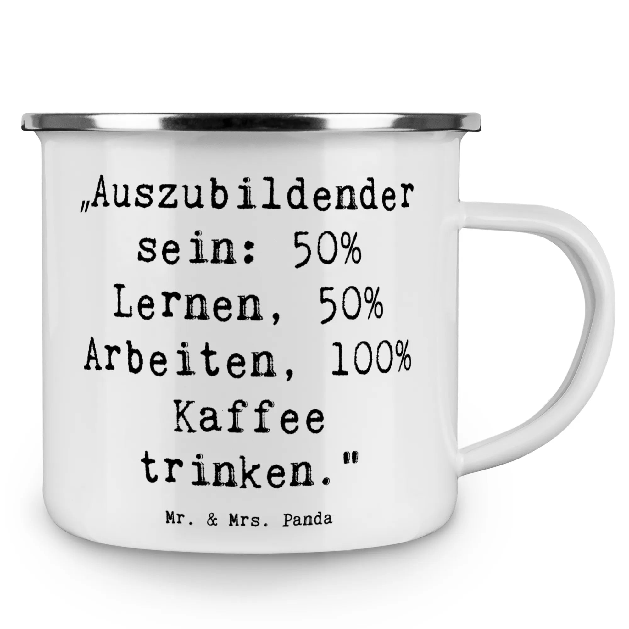 Die Camping Emaille Tasse "Auszubildender" von Mr. & Mrs. Panda ist nicht nur ein praktischer Begleiter für deine Abenteuer in der Natur, sondern auch ein liebevolles Geschenk für alle, die sich in der Ausbildung befinden. Mit dem witzigen Spruch „Auszubildender sein: 50% Lernen, 50% Arbeiten, 100% Kaffee trinken.“ wird jeder Schluck aus dieser Tasse zu einem wahren Motivationsschub. Ob beim Camping, auf einer Wanderung oder einfach beim Entspannen im Garten – die Tasse hält nicht nur dein Lieblingsgetränk warm, sondern auch dein Herz.