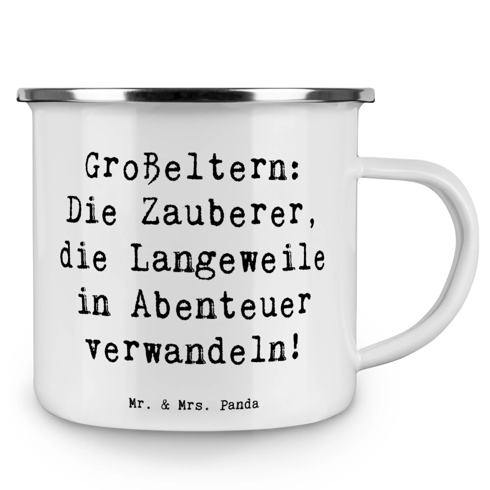 Die Camping Emaille Tasse von Mr. & Mrs. Panda ist das perfekte Geschenk für Großeltern und eine liebevolle Hommage an die besonderen Momente, die Familien zusammenbringen. Mit dem charmanten Slogan 'Großeltern: Die Zauberer, die Langeweile in Abenteuer verwandeln!' verkörpert diese Tasse die unermüdliche Freude und Liebe, die Großeltern in das Leben ihrer Enkelkinder bringen. Sie sind oft die beruhigenden Stimmen voller Weisheit und die kreativen Köpfe, die aus jeder Sekunde ein Abenteuer gestalten.