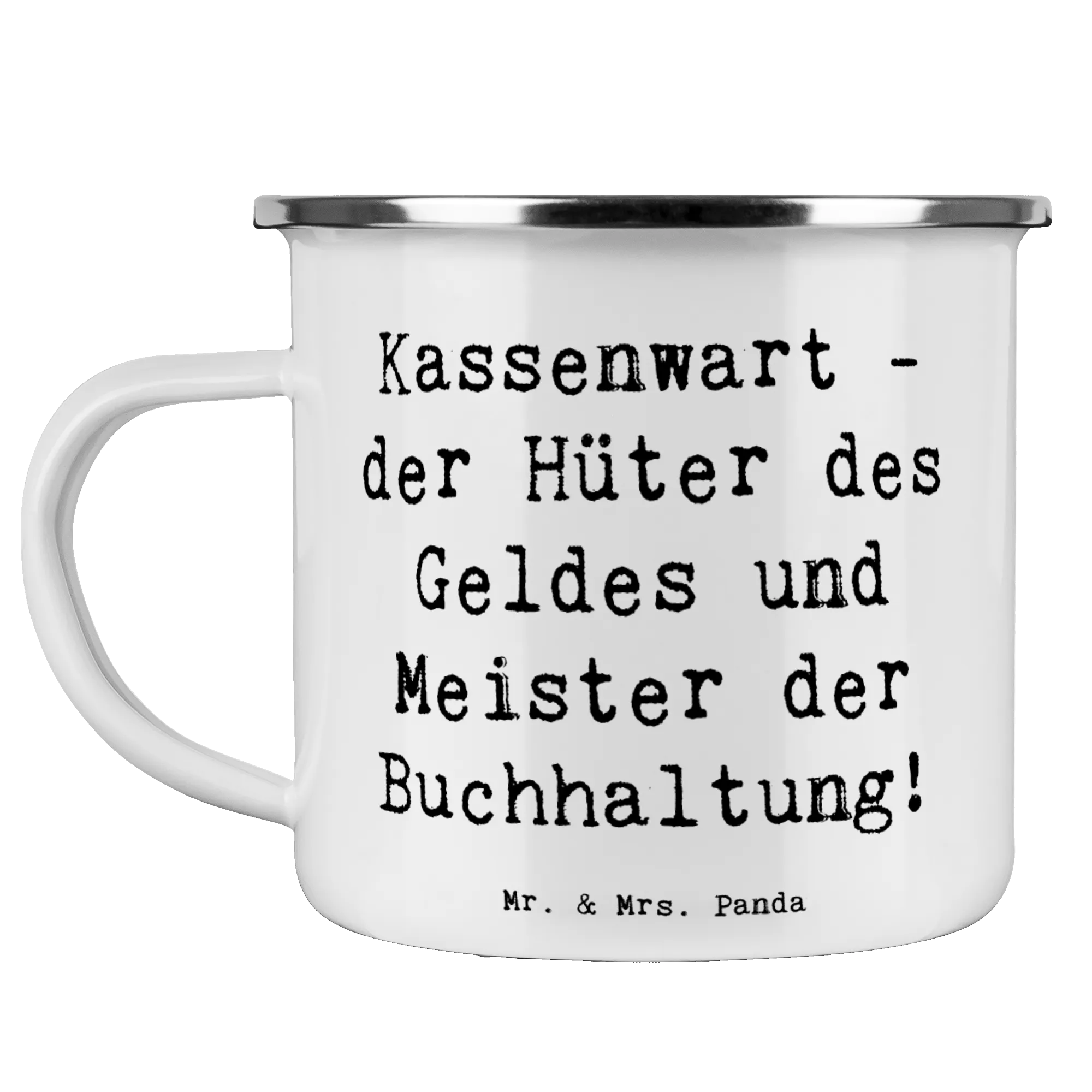 Die Camping Emaille Tasse "Kassenwart - der Hüter des Geldes und Meister der Buchhaltung!" von Mr. & Mrs. Panda ist das perfekte Geschenk für alle, die sich mit den Zahlen im Beruf beschäftigen. Egal, ob Du einen Kassenwart, Buchhalter oder Finanzexperten kennst – diese Tasse wird garantiert ein Lächeln auf ihr Gesicht zaubern!