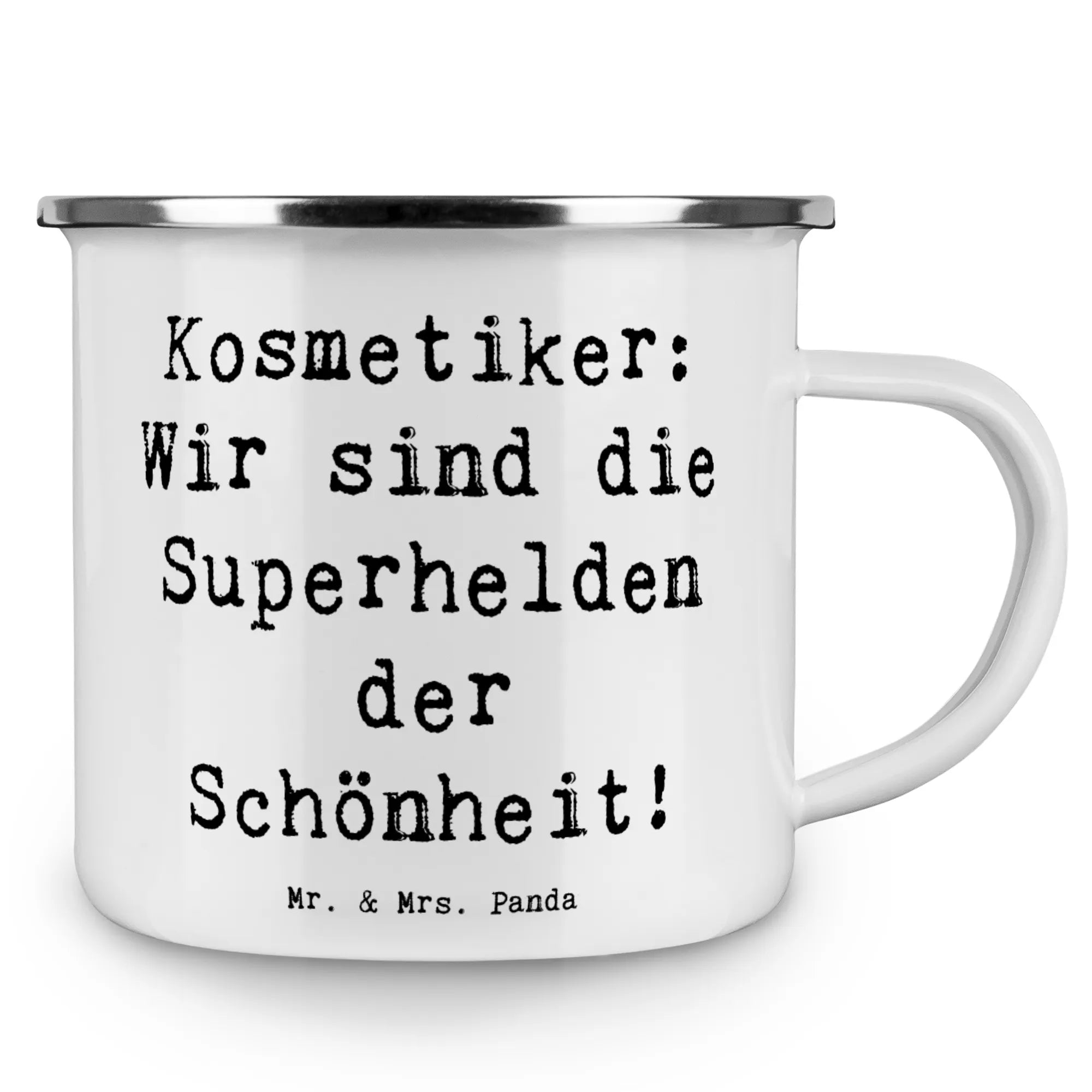 Camping Emaille Tasse Spruch Kosmetiker: Wir sind die Superhelden der Schönheit!