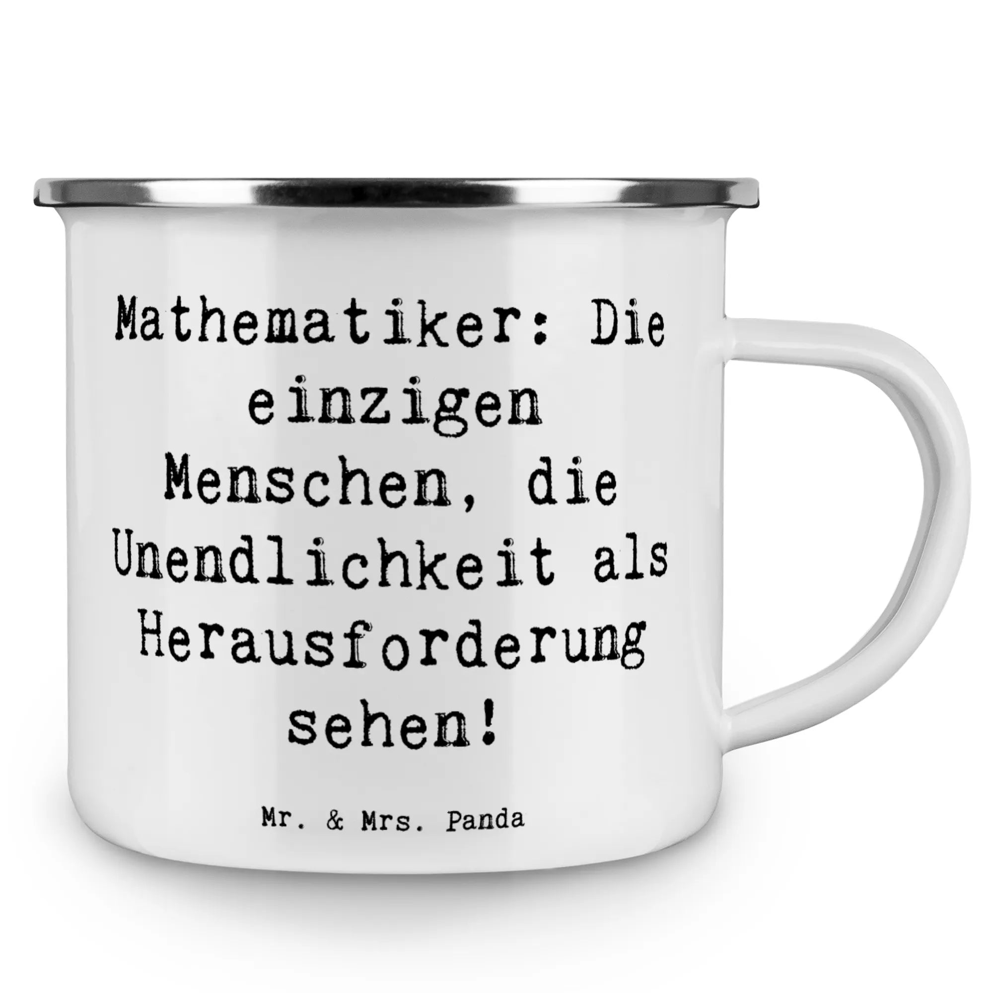 Camping Emaille Tasse Spruch Mathematiker: Die einzigen Menschen, die Unendlichkeit als Herausforderung sehen!