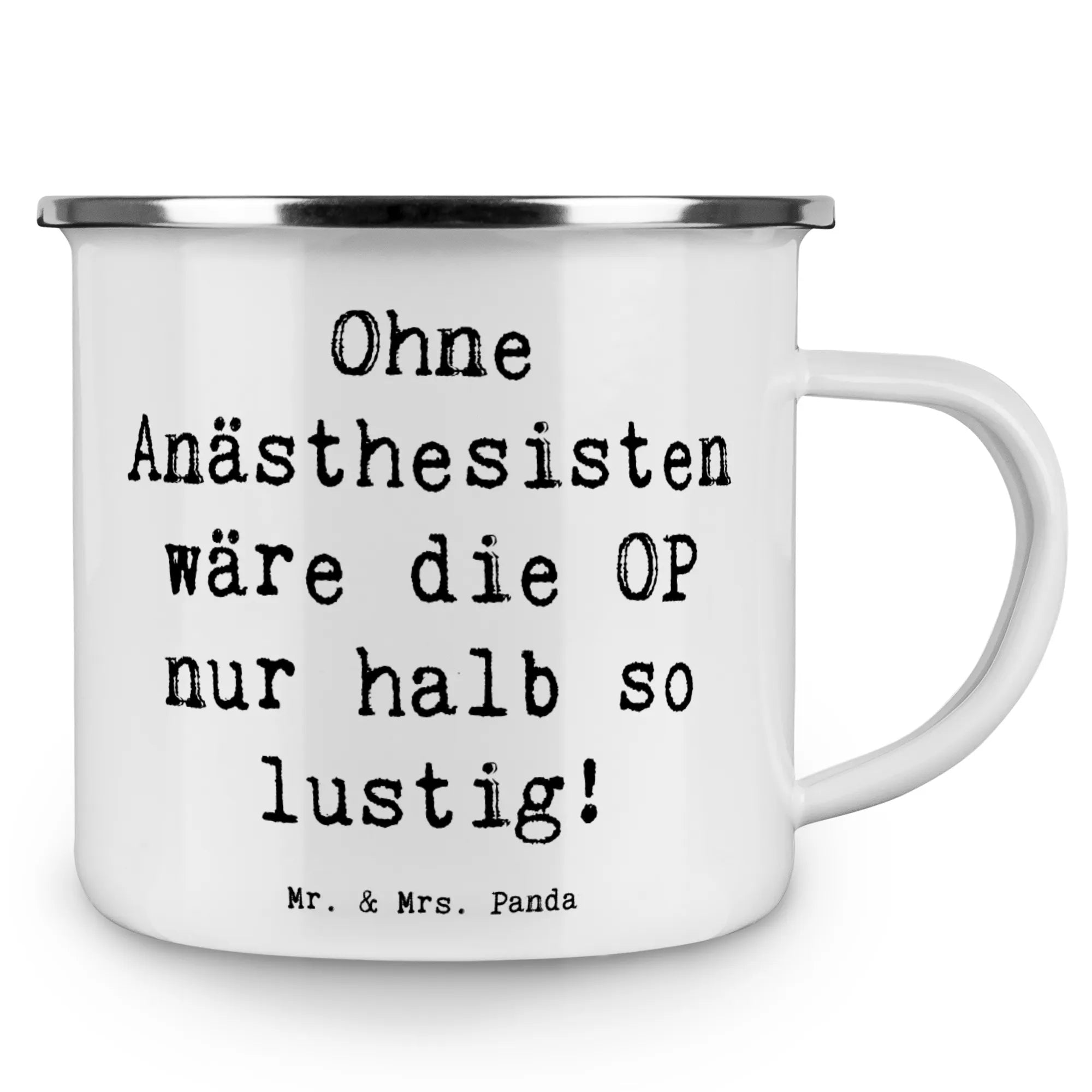 Camping Emaille Tasse Spruch Ohne Anästhesisten wäre die OP nur halb so lustig!