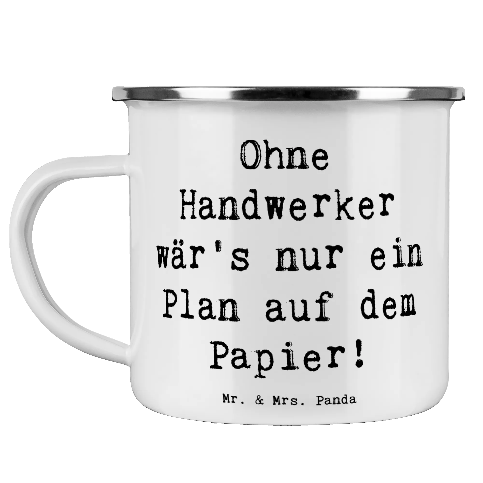 Camping Emaille Tasse Spruch Ohne Handwerker wär's nur ein Plan auf dem Papier!