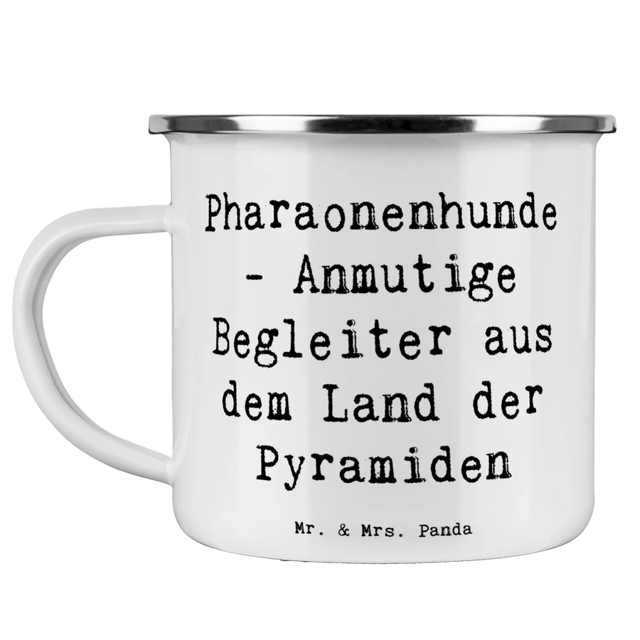 Die Camping Emaille Tasse mit dem Motiv Pharaonenhund von Mr. & Mrs. Panda ist der perfekte Begleiter für all deine Abenteuer in der Natur! Diese wunderschöne und beständige Tasse ist nicht nur ein praktisches Utensil für deine Campingausflüge oder Wanderungen, sondern auch ein echter Hingucker. Mit einem Slogan, der die anmutigen Pharaonenhunde stilvoll beschreibt, hebt sich dieses Produkt von herkömmlichen Campingtassen ab.