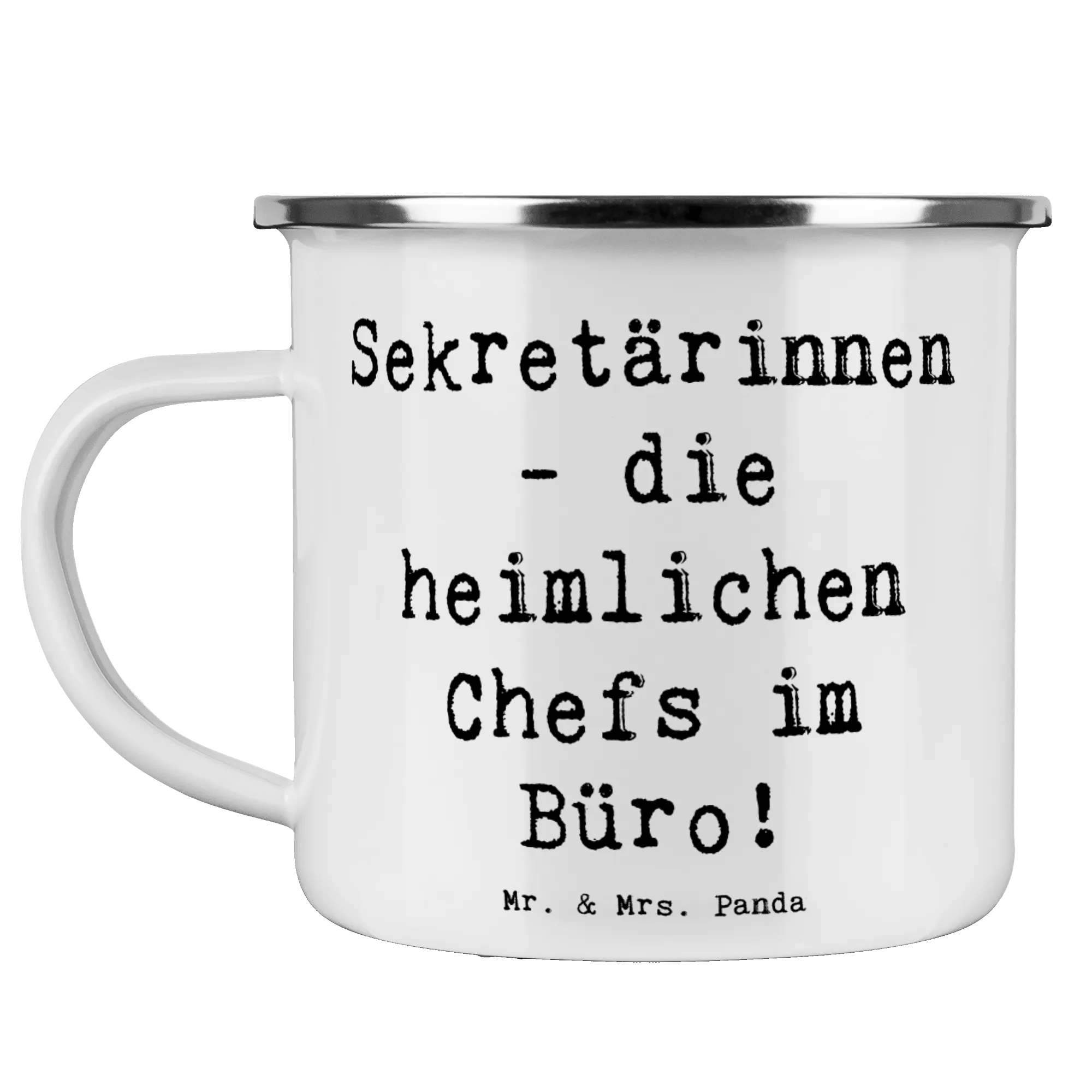 Du suchst ein ganz besonderes Geschenk für deine liebe Sekretärin? Unsere Camping Emaille Tasse mit dem Spruch "Sekretärinnen - die heimlichen Chefs im Büro!" ist genau das richtige! Diese wunderschöne und beständige Metalltasse von Mr. & Mrs. Panda ist perfekt für jeden Einsatz, sei es im Büro oder beim nächsten Campingausflug. Die Tasse hat eine Füllmenge von 300 ml und ist leicht mit nur 172 g – ideal zum Mitnehmen auf Wanderungen oder Campingabenteuer.