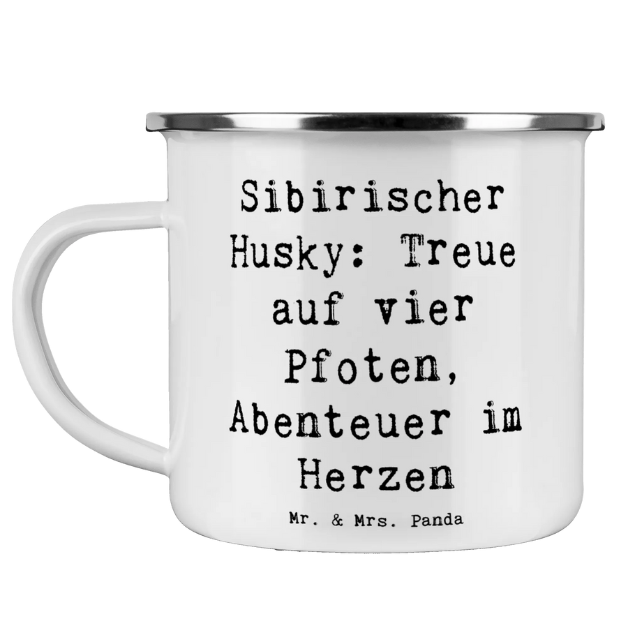 Die wunderschöne Camping Emaille Tasse mit dem Motiv des Siberian Huskys von Mr. & Mrs. Panda ist das perfekte Geschenk für alle Hundefans und Outdoor-Liebhaber! Mit ihrem niedlichen Design und dem liebevollen Spruch 'Sibirischer Husky: Treue auf vier Pfoten, Abenteuer im Herzen' wird diese Tasse schnell zu deinem liebsten Begleiter beim Camping, Wandern oder einfach beim entspannten Kaffeegenuss im Garten.