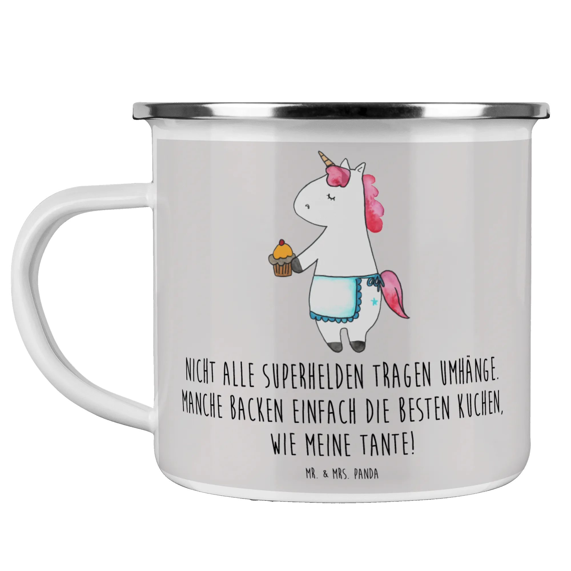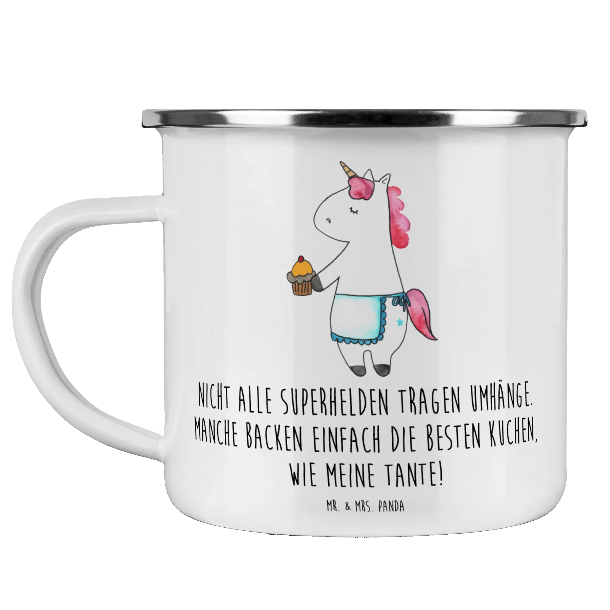 Wenn du auf der Suche nach dem perfekten Geschenk für deine Tante bist, dann ist die Camping Emaille Tasse von Mr. & Mrs. Panda genau das Richtige für dich! Diese wunderschöne und beständige Tasse aus kratzfester Emaille verbindet Funktionalität mit einem süßen Design. Mit dem liebevollen Slogan 'Nicht alle Superhelden tragen Umhänge. Manche backen einfach die besten Kuchen, wie meine Tante!' feierst du die besondere Beziehung zu deiner Tante.