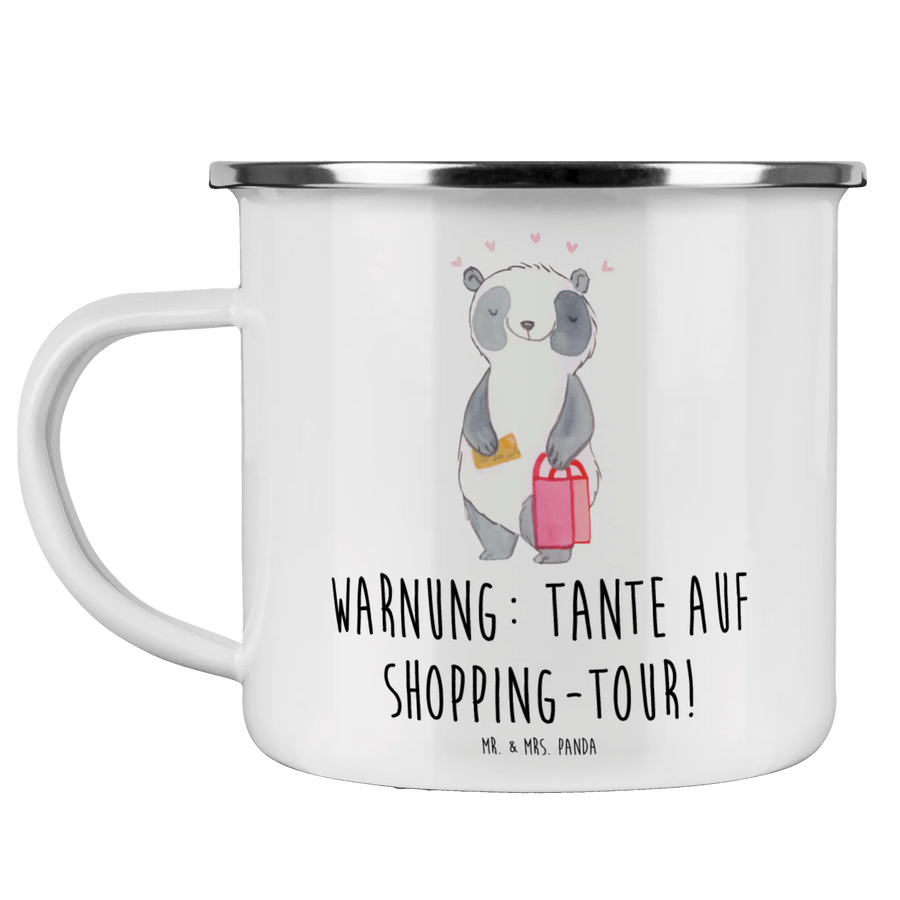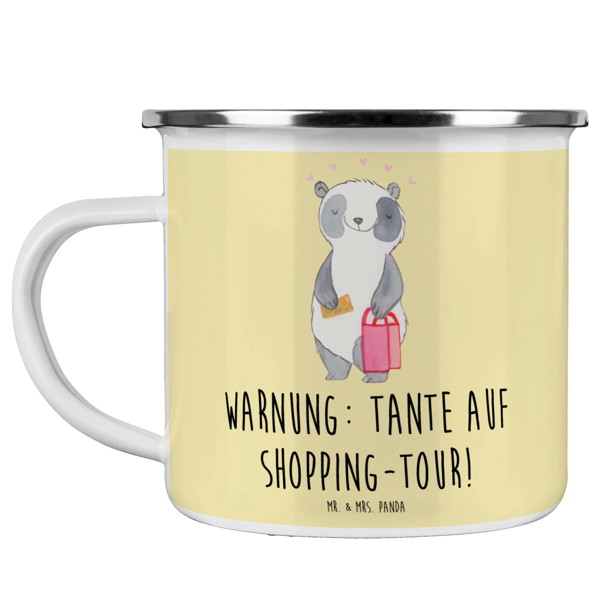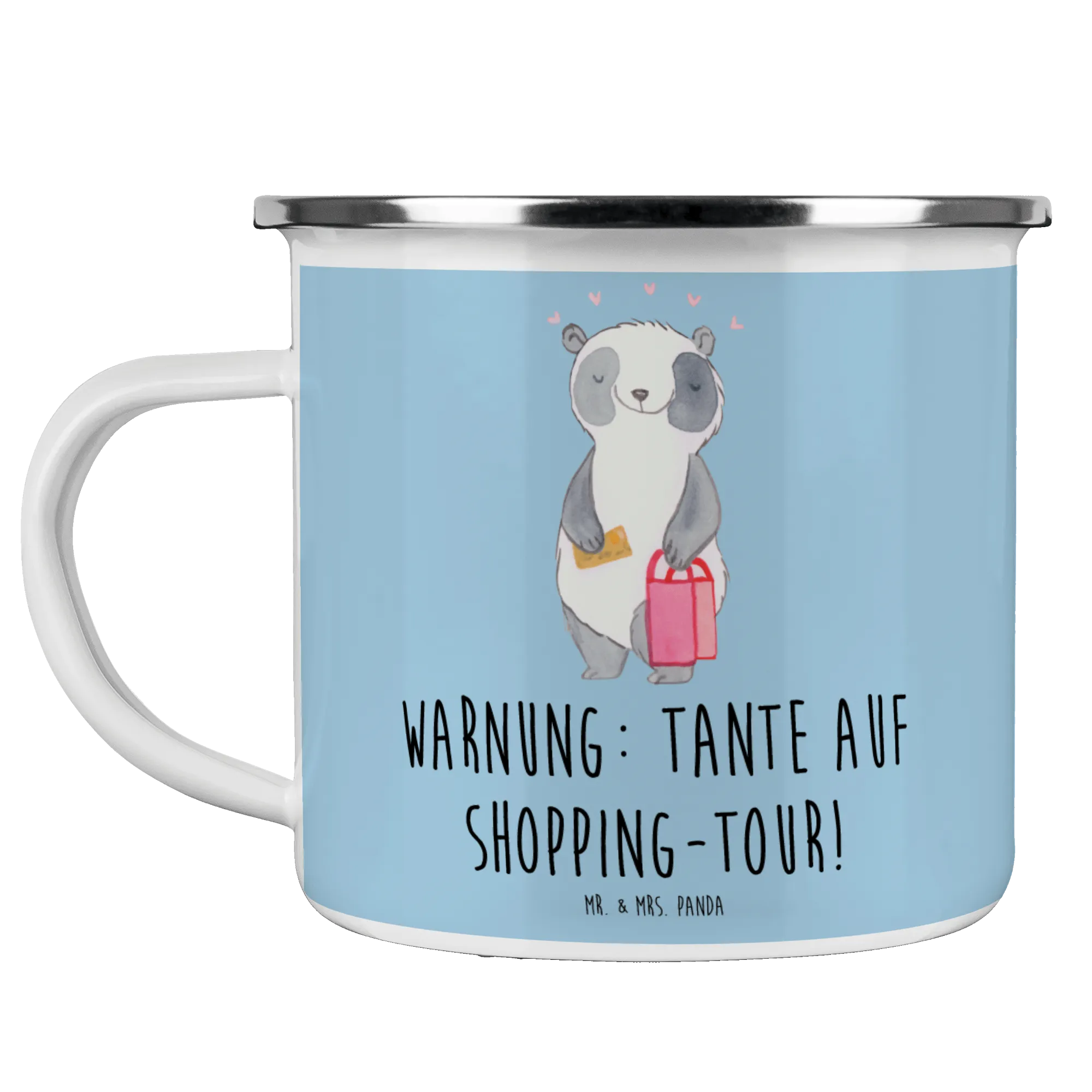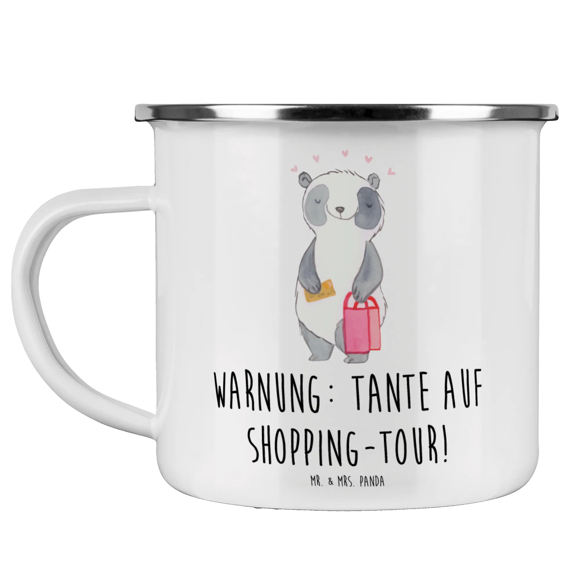 Die Camping Emaille Tasse "Tante" von Mr. & Mrs. Panda ist das perfekte Geschenk für jeden Outdoor-Freund und vor allem für alle lieben Tanten da draußen. Mit einem charmanten Spruch "Warnung: Tante auf Shopping-Tour!" bringt diese Tasse die Fröhlichkeit und den Humor direkt ins Zelt oder auf die Picknickdecke.