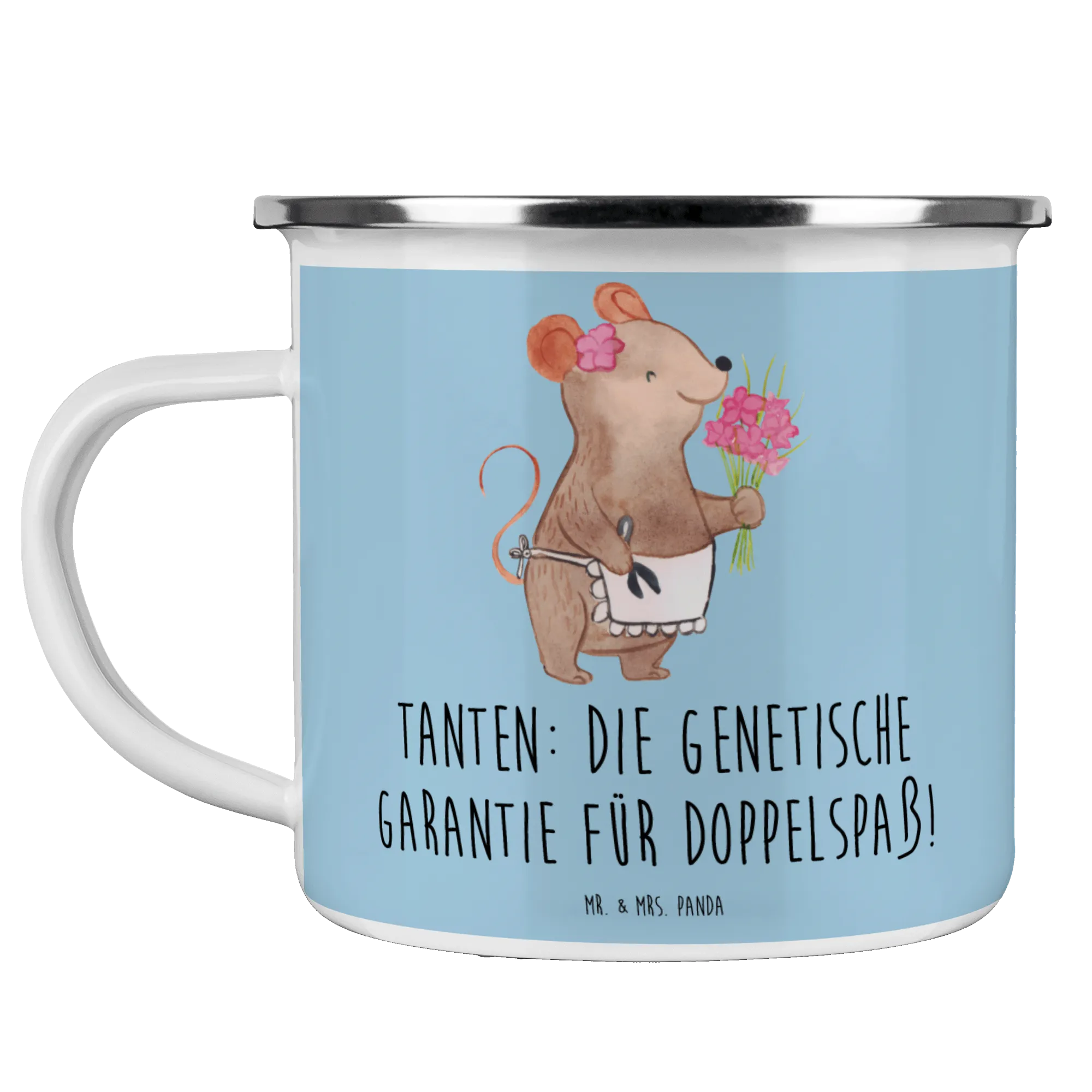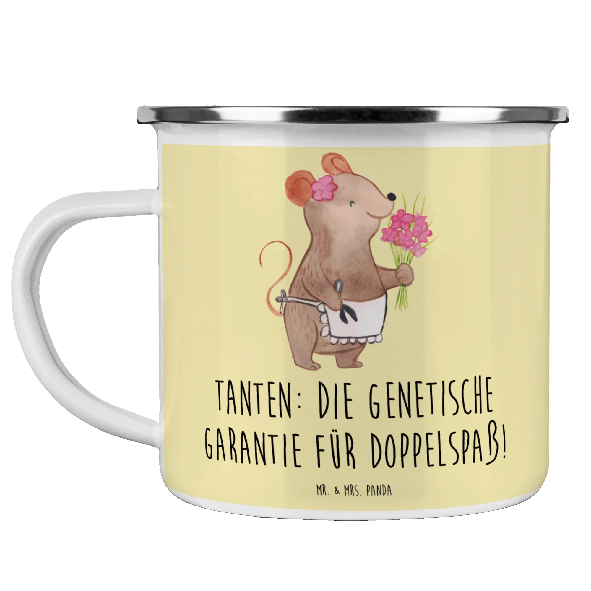 Verschenke Freude und Liebe mit dieser Camping Emaille Tasse von Mr. & Mrs. Panda, und lass die besonderen Momente mit Deiner Tante nie in Vergessenheit geraten!