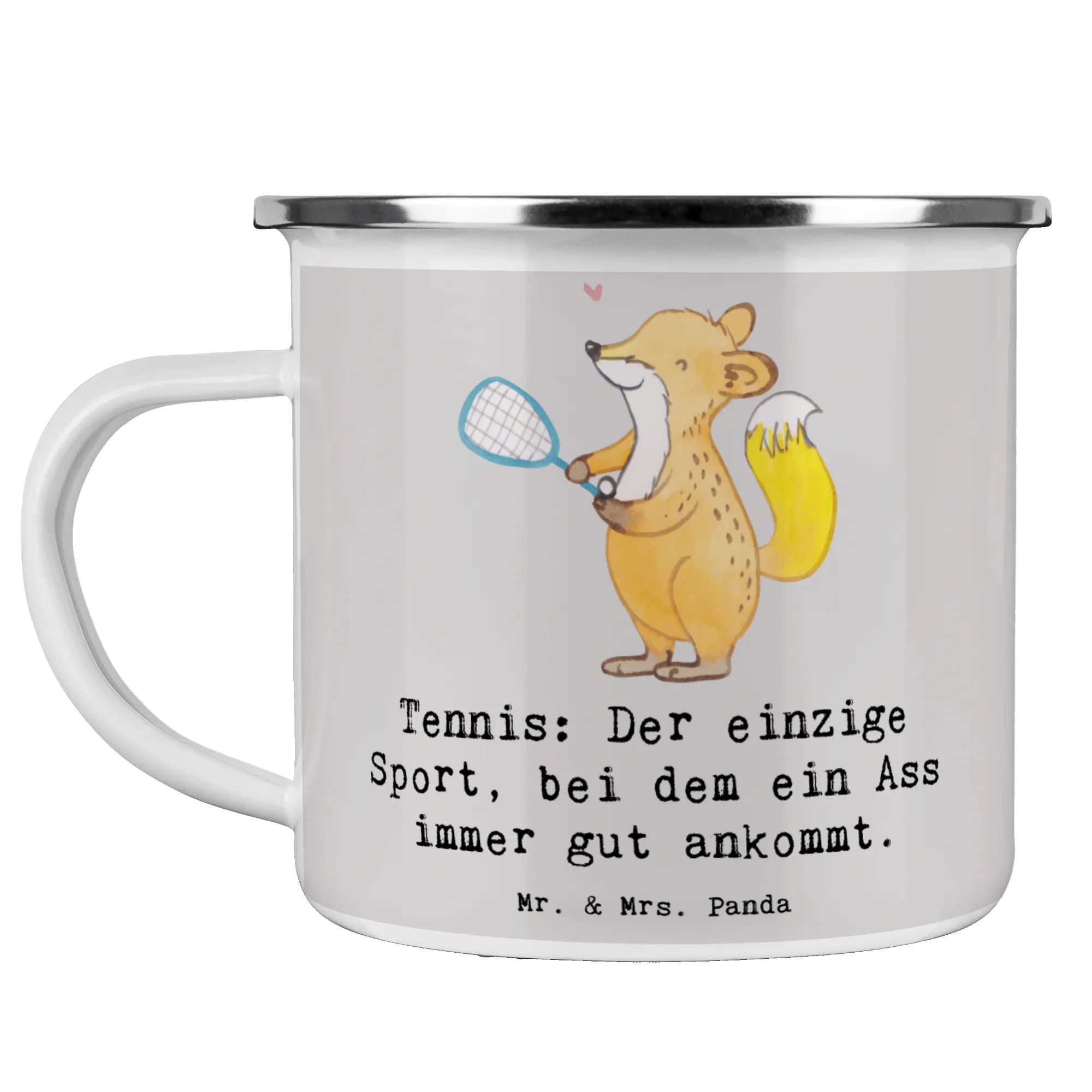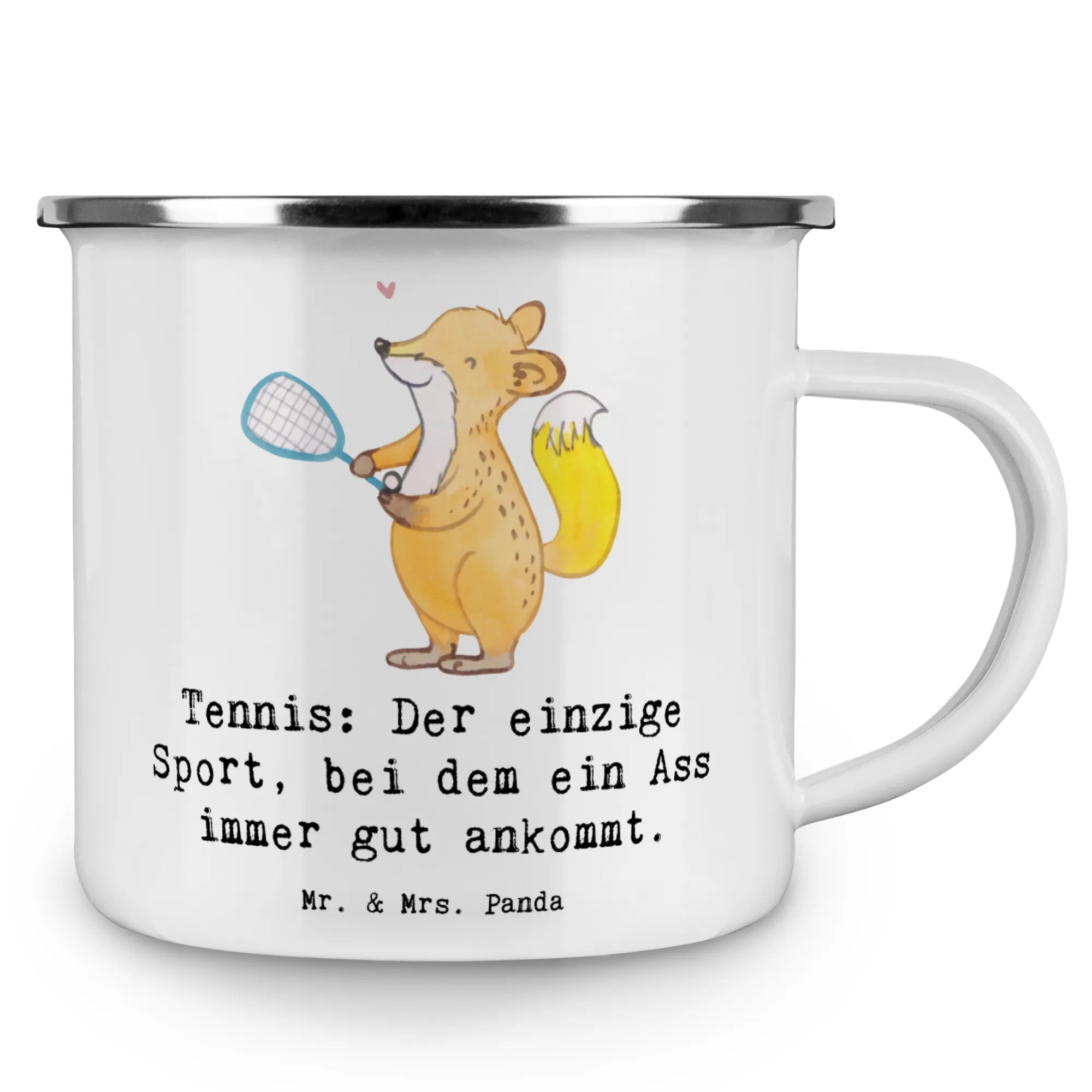 Die Camping Emaille Tasse "Tennis" von Mr. & Mrs. Panda ist das ideale Geschenk für alle Sportbegeisterten und Outdoor-Fans. Mit einem charmanten Motiv und dem witzigen Slogan "Tennis: Der einzige Sport, bei dem ein Ass immer gut ankommt." bringt diese Tasse nicht nur Freude, sondern auch einen Hauch von Humor in jede Kaffeepause.