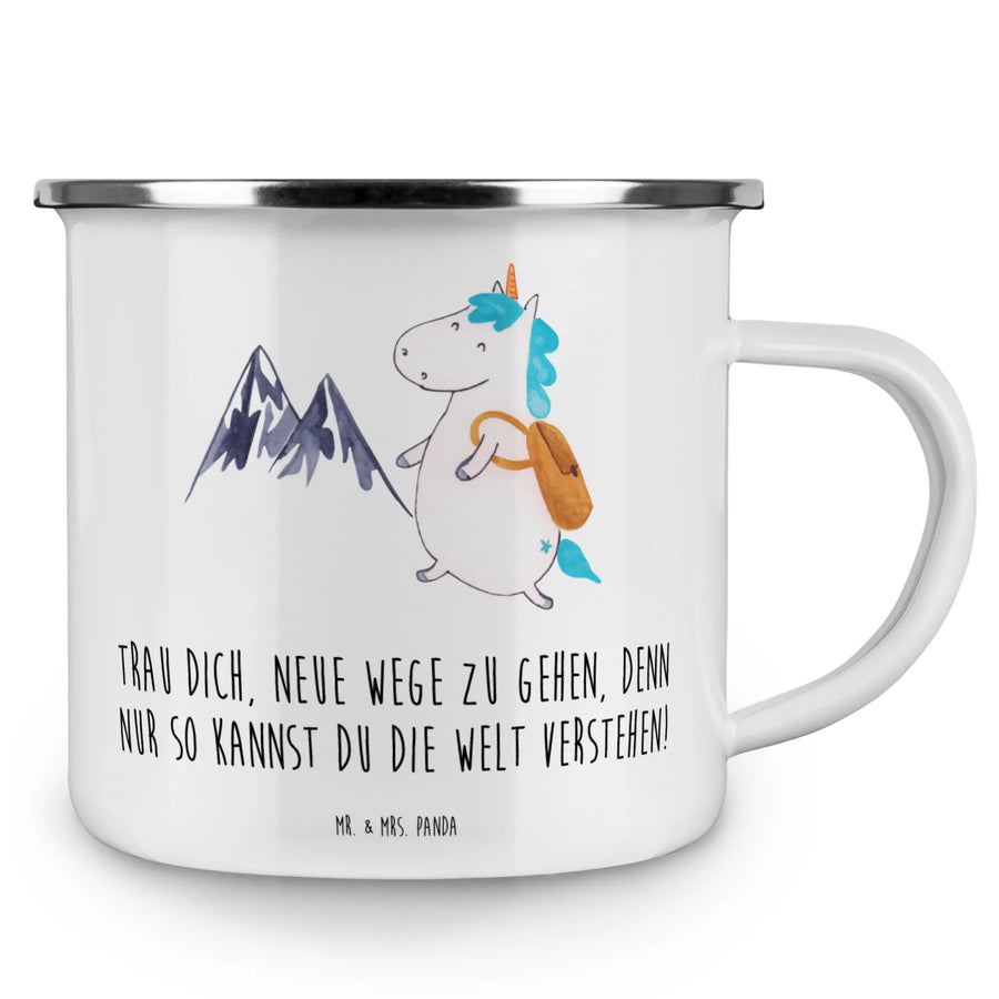 Die Camping Emaille Tasse "Unbekannte Orte erkunden" aus der Mutmacher Kollektion von Mr. & Mrs. Panda ist nicht nur ein vielseitiger Trinkbecher, sondern auch eine Quelle der Inspiration. Ideal für alle, die gerne in die Natur hinausgehen, neue Abenteuer erleben und Mut für neue Wege schöpfen möchten.