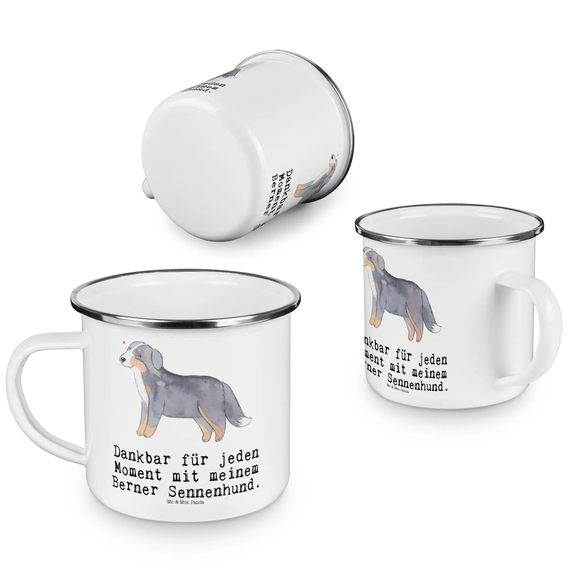 Kempingowy kubek emaliowany Berneński pies górski chwila
