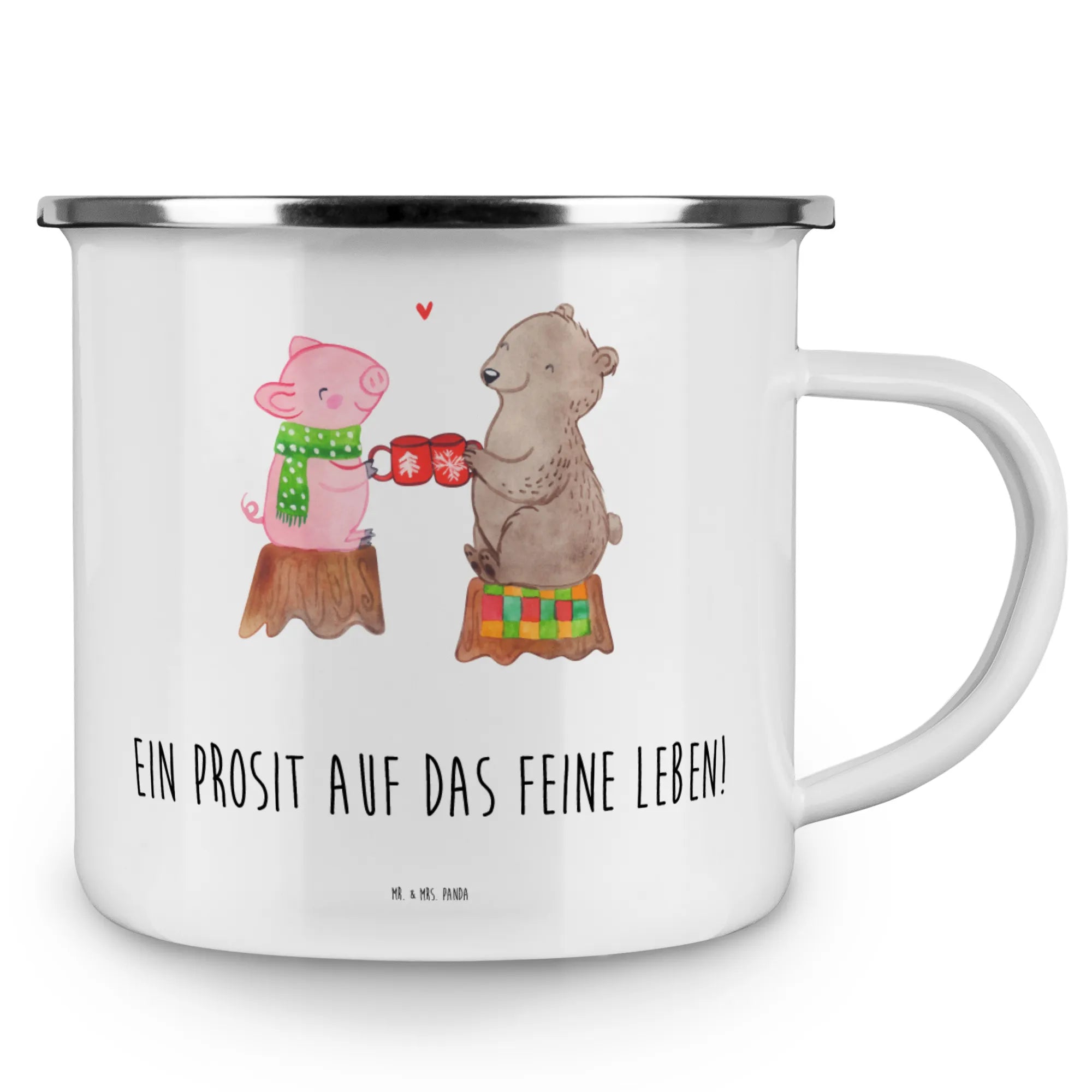 Die Camping Emaille Tasse 'Glühschwein Sause' von Mr. & Mrs. Panda ist das perfekte Geschenk für die kalte Jahreszeit. Mit dieser Tasse erhältst Du nicht nur ein praktisches Utensil für Deine nächsten Campingausflüge oder Wanderungen, sondern auch ein liebevoll gestaltetes Stück, das Wärme und Freude in jede Tasse bringt.