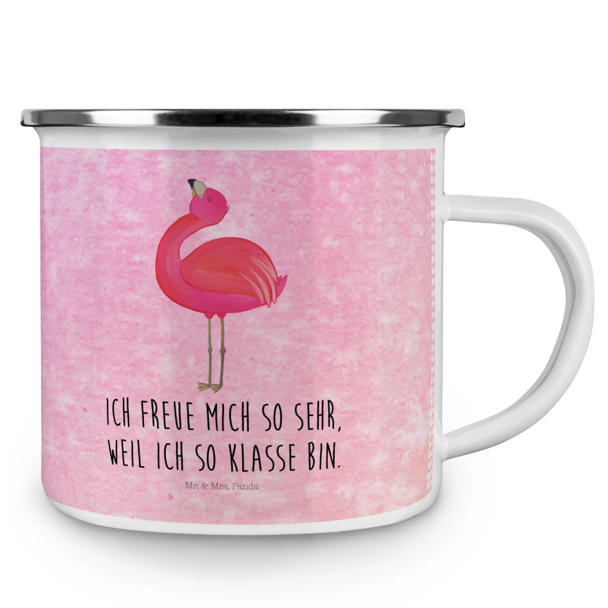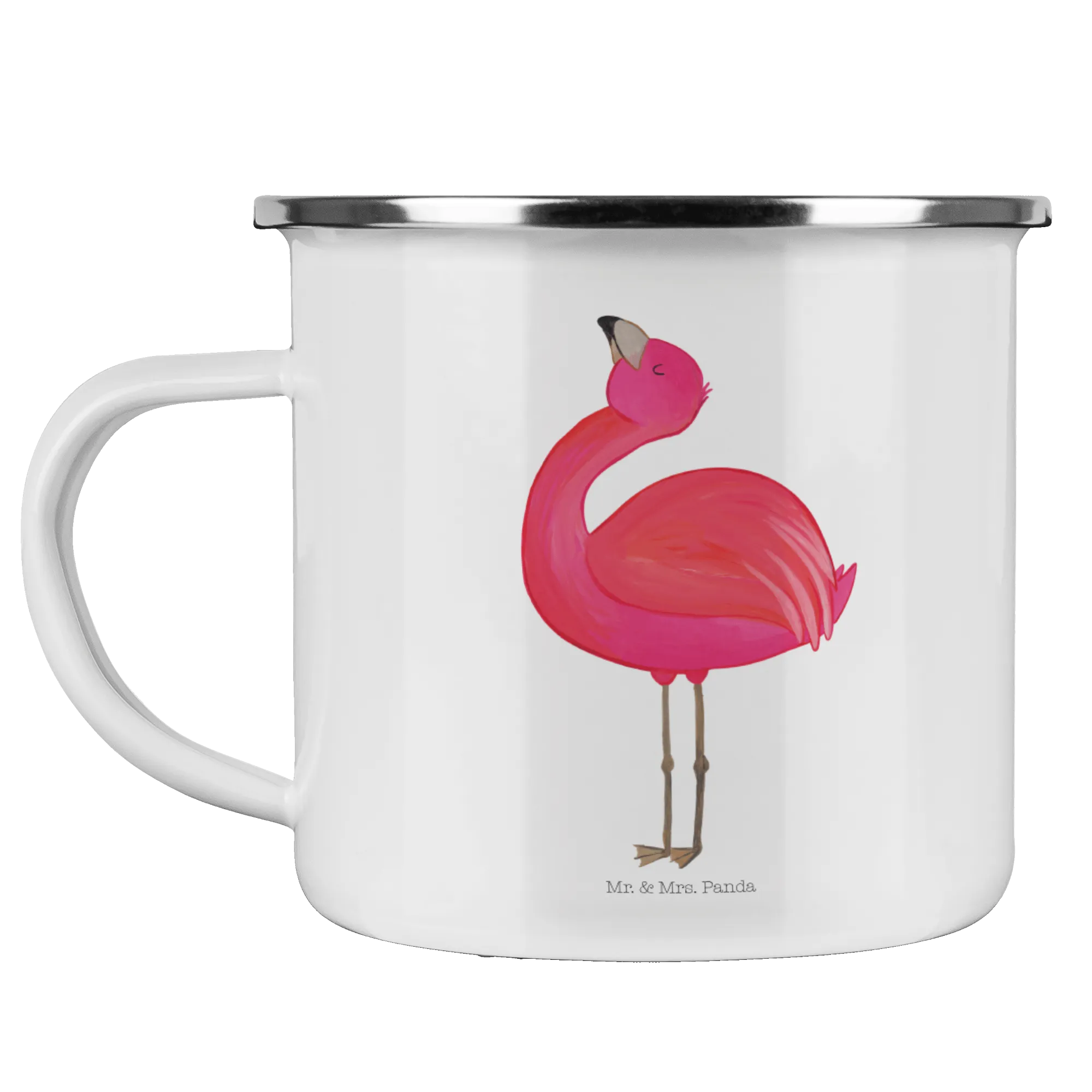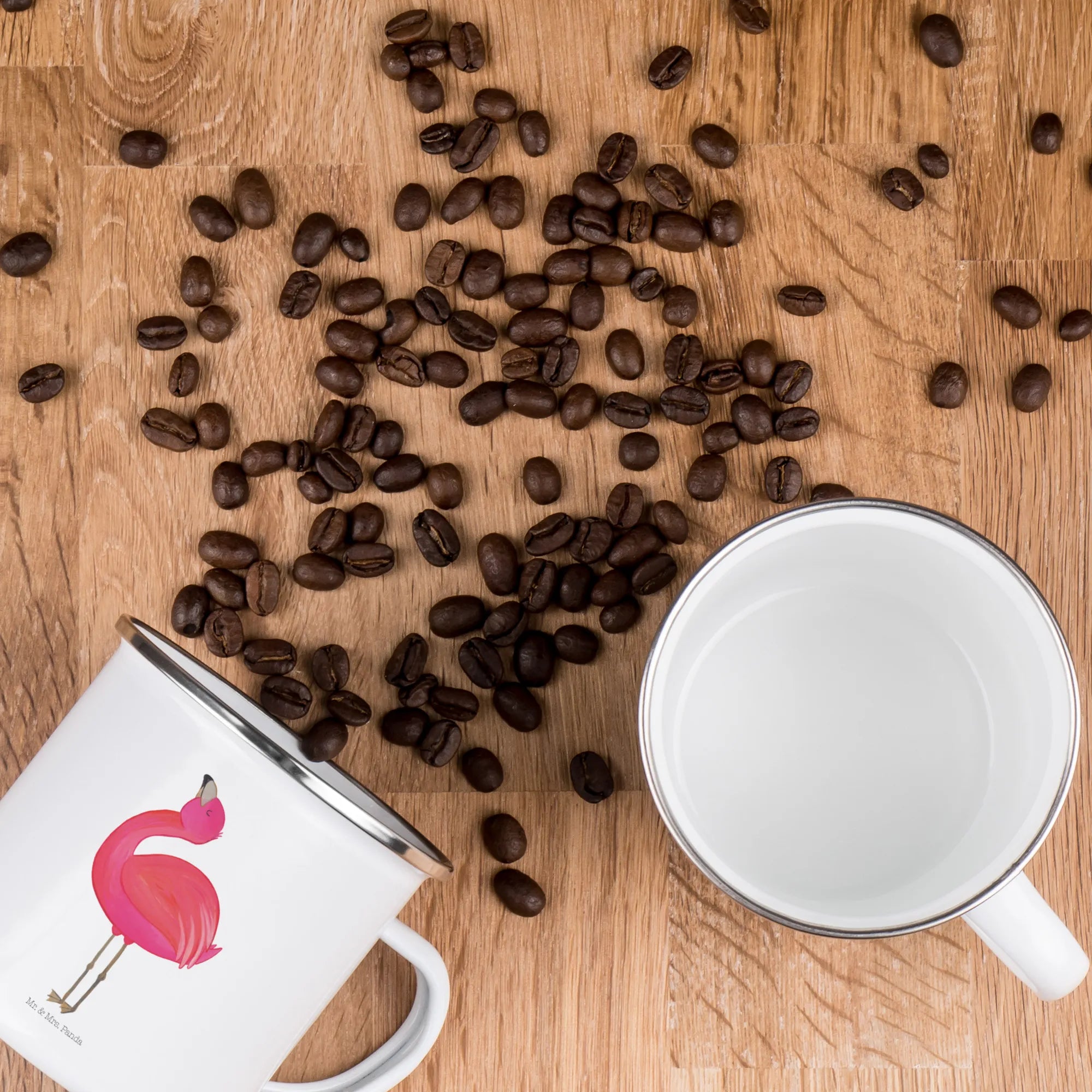 Kempingowy kubek emaliowany Flamingo Duma - z napisem - Biały