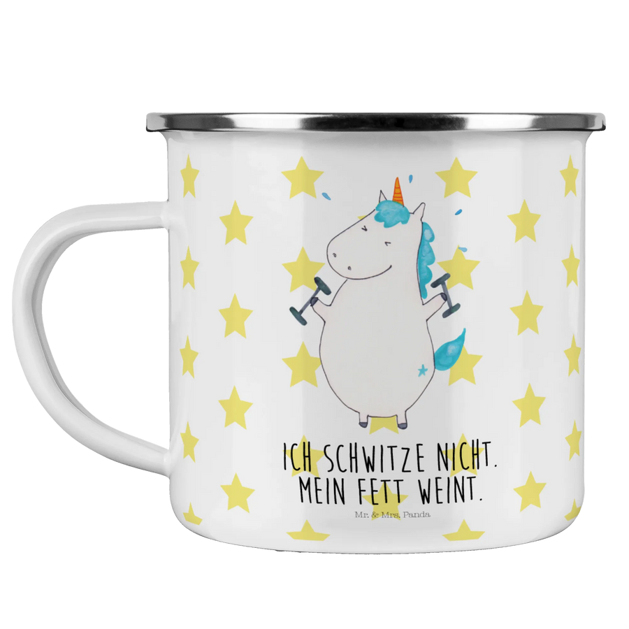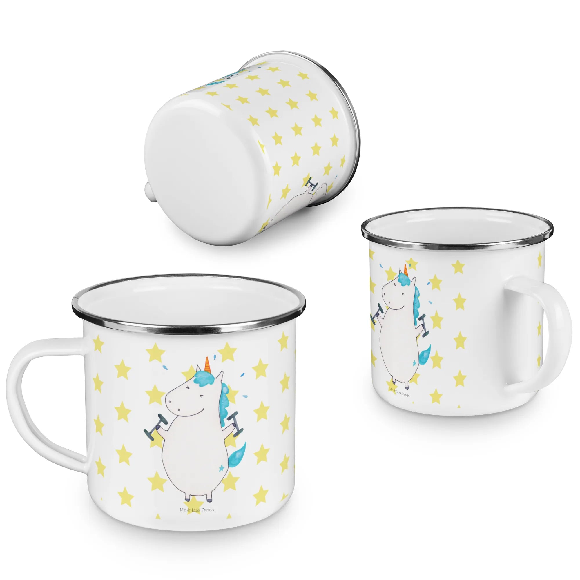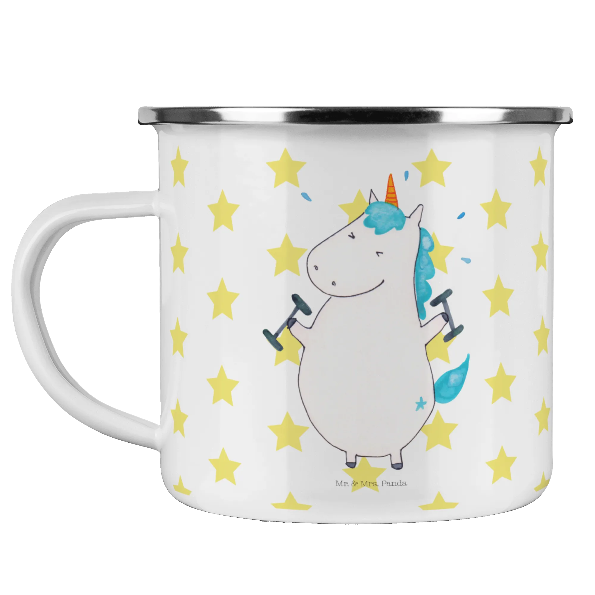 Kempingowy kubek emaliowany jednorożec Fitness - z napisem - Biały