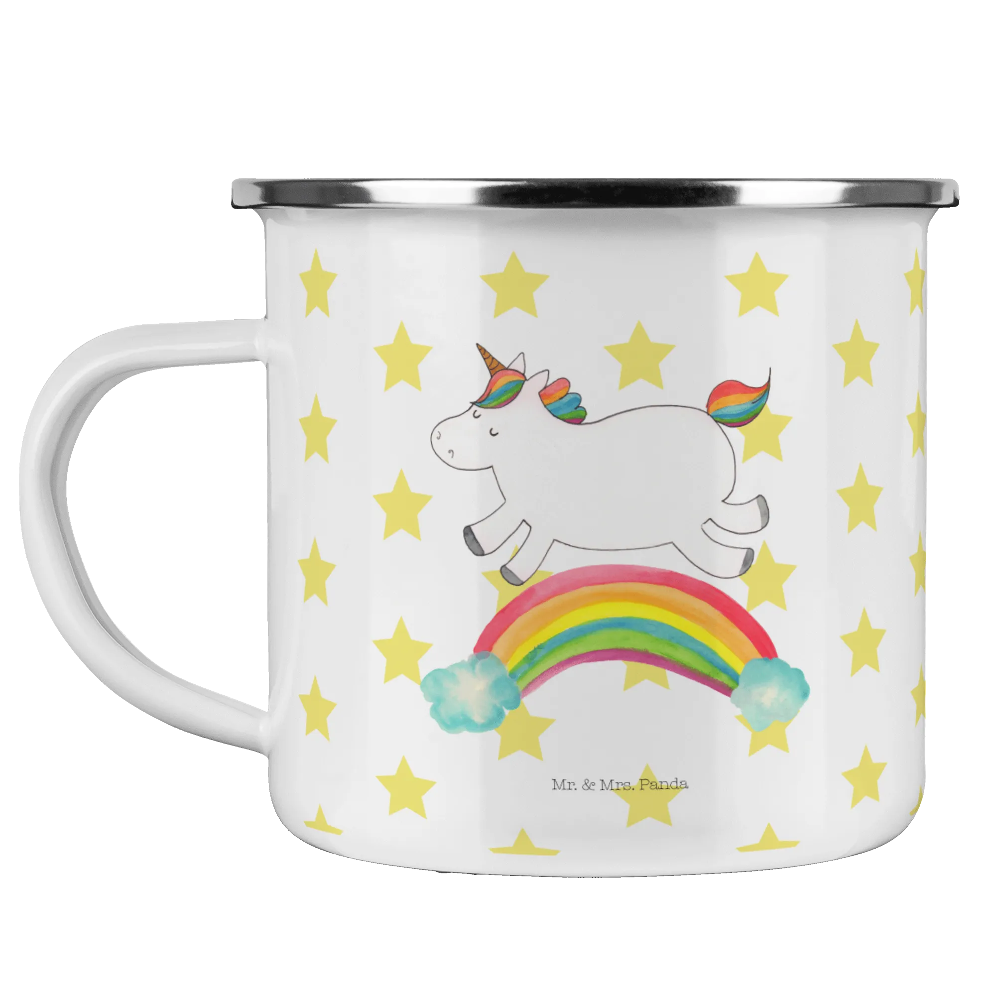 Kempingowy kubek emaliowany jednorożec tęcza - z napisem - Biały
