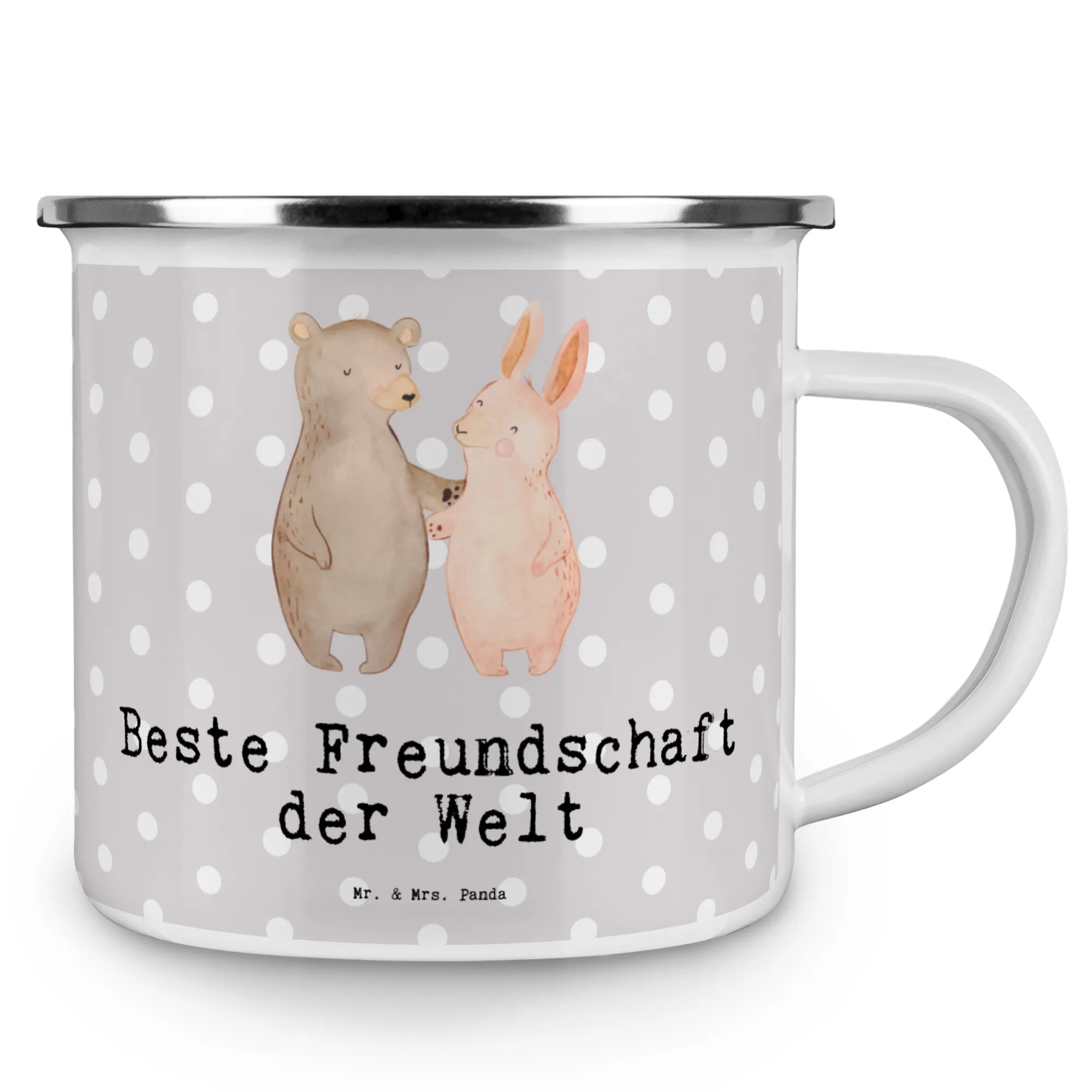 Kempingowy kubek emaliowany królik Najlepsza przyjaźń na świecie - Biały