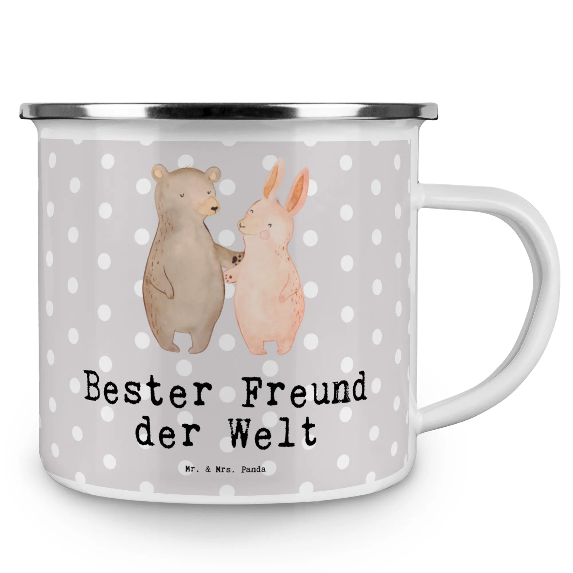 Kempingowy kubek emaliowany królik Najlepszy przyjaciel na świecie - biały