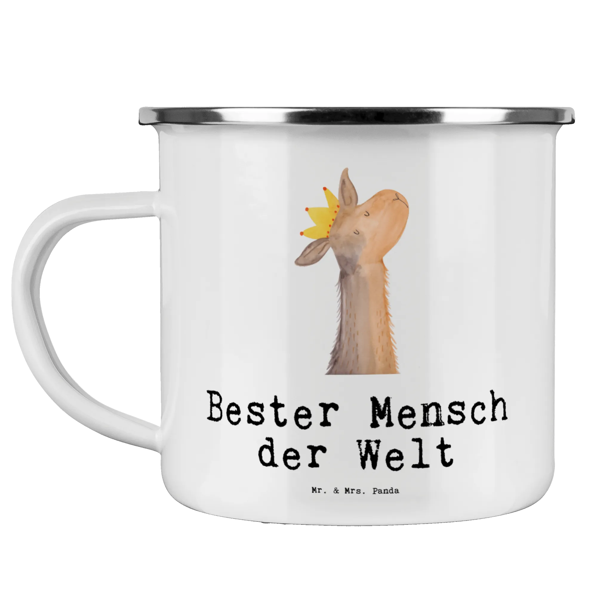 Kempingowy kubek emaliowany lama Najlepszy człowiek na świecie - Biały