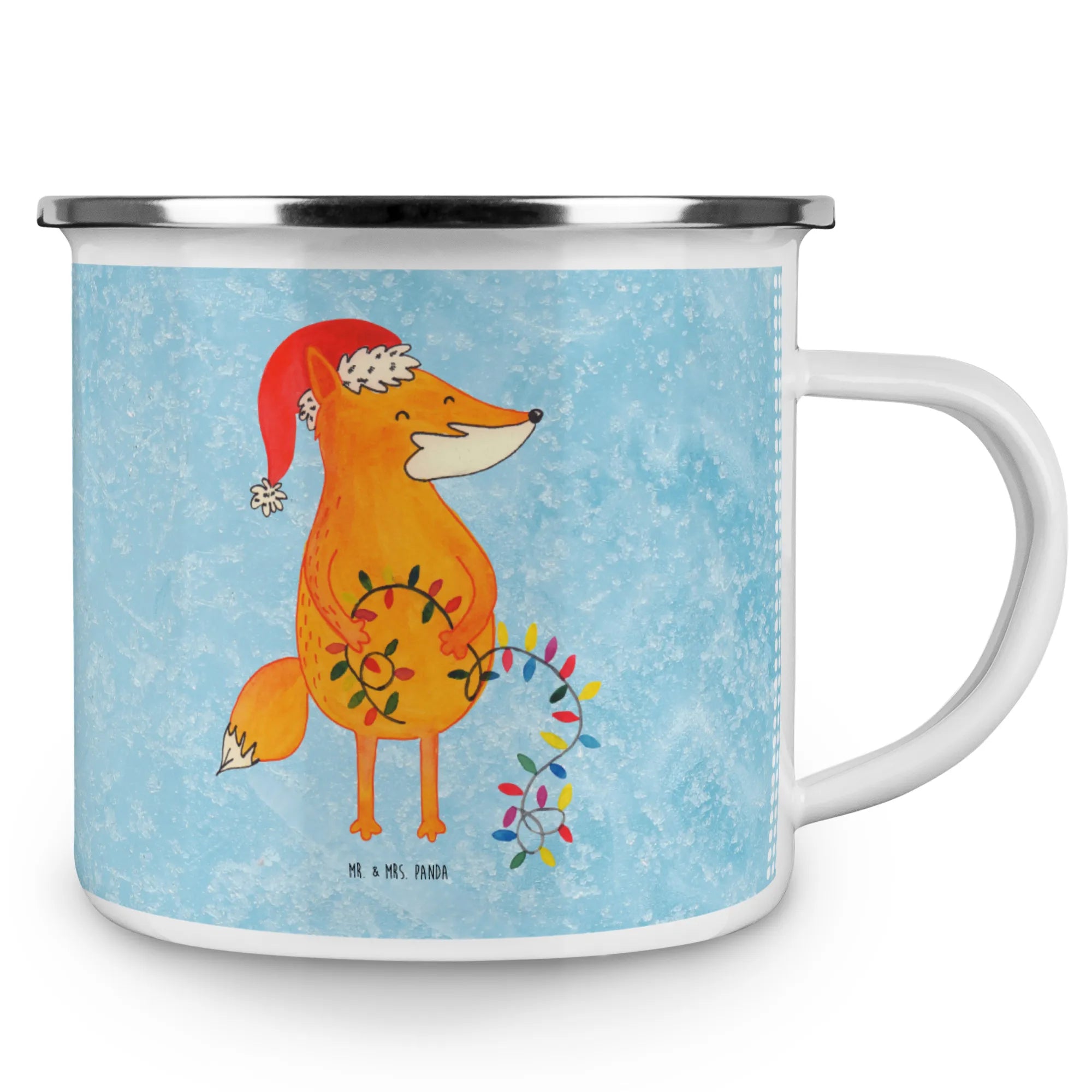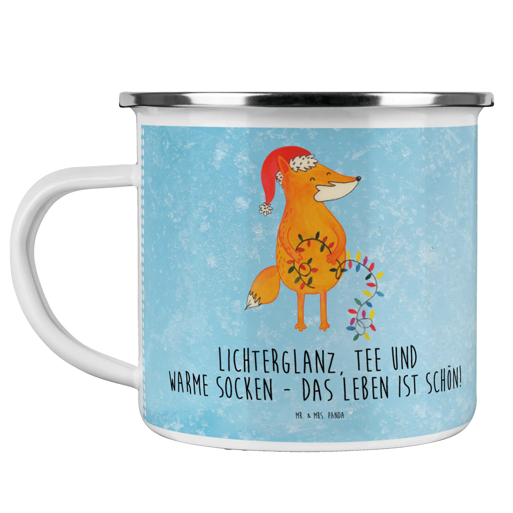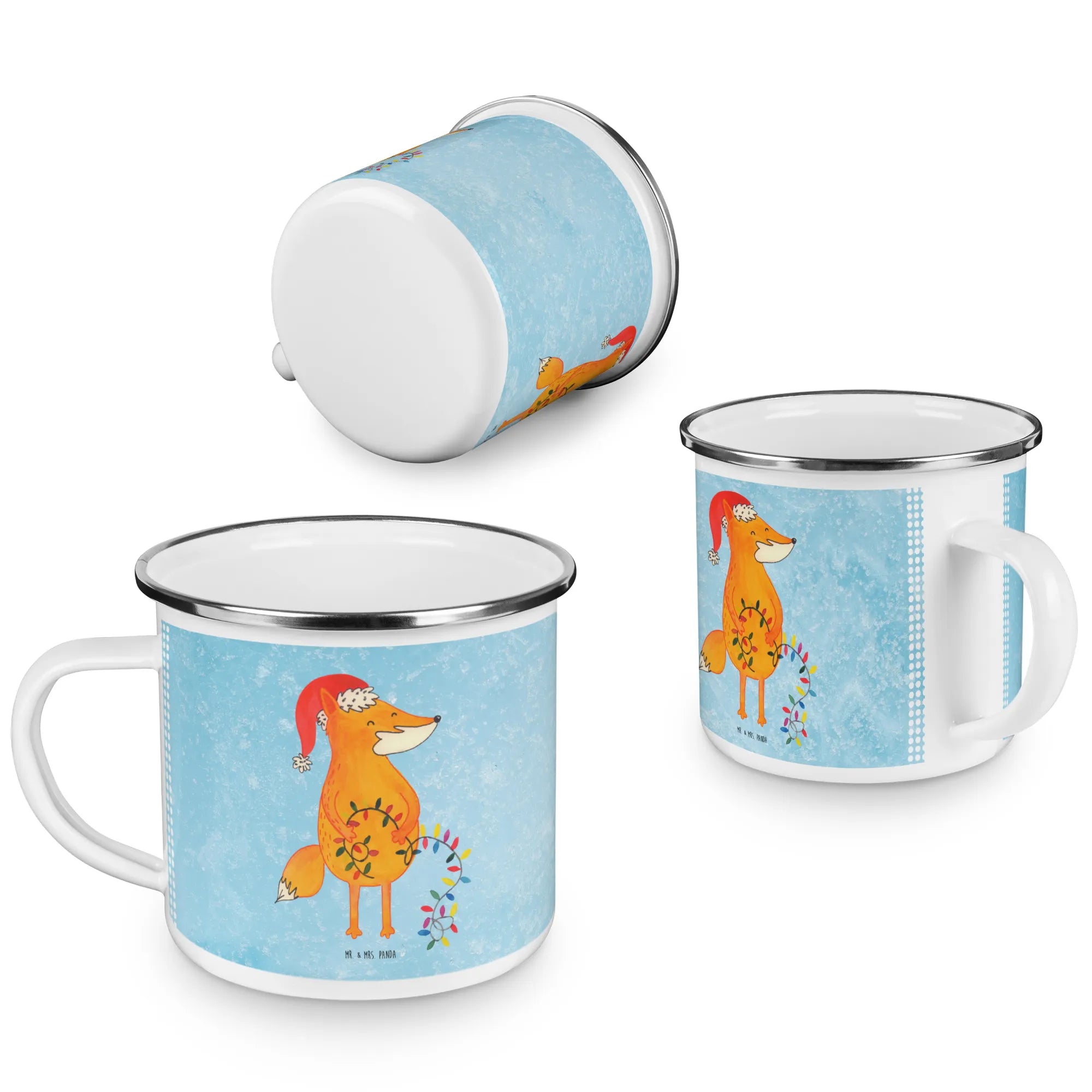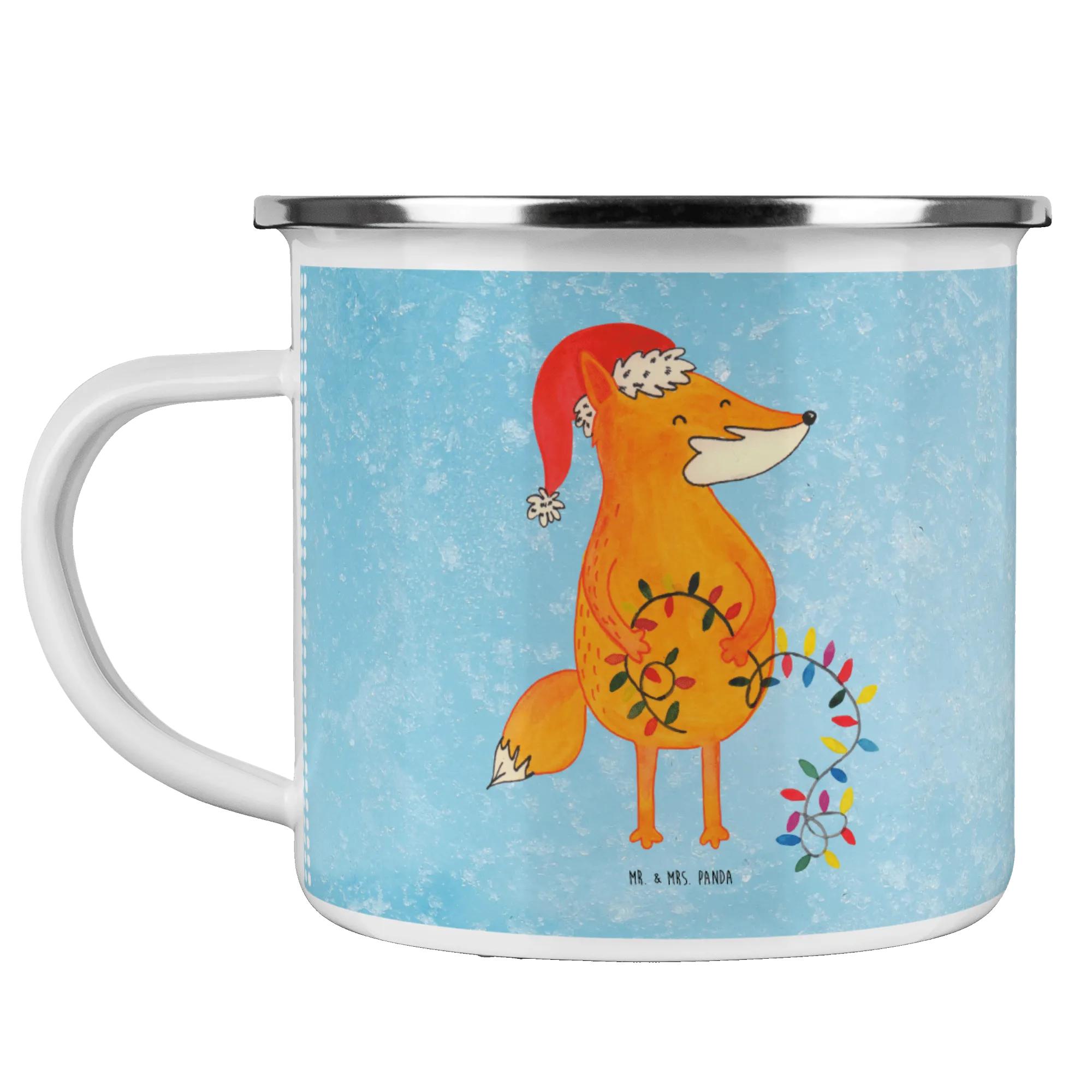 Kempingowy kubek emaliowany lis Boże Narodzenie - bez napisu - lodowoniebieski