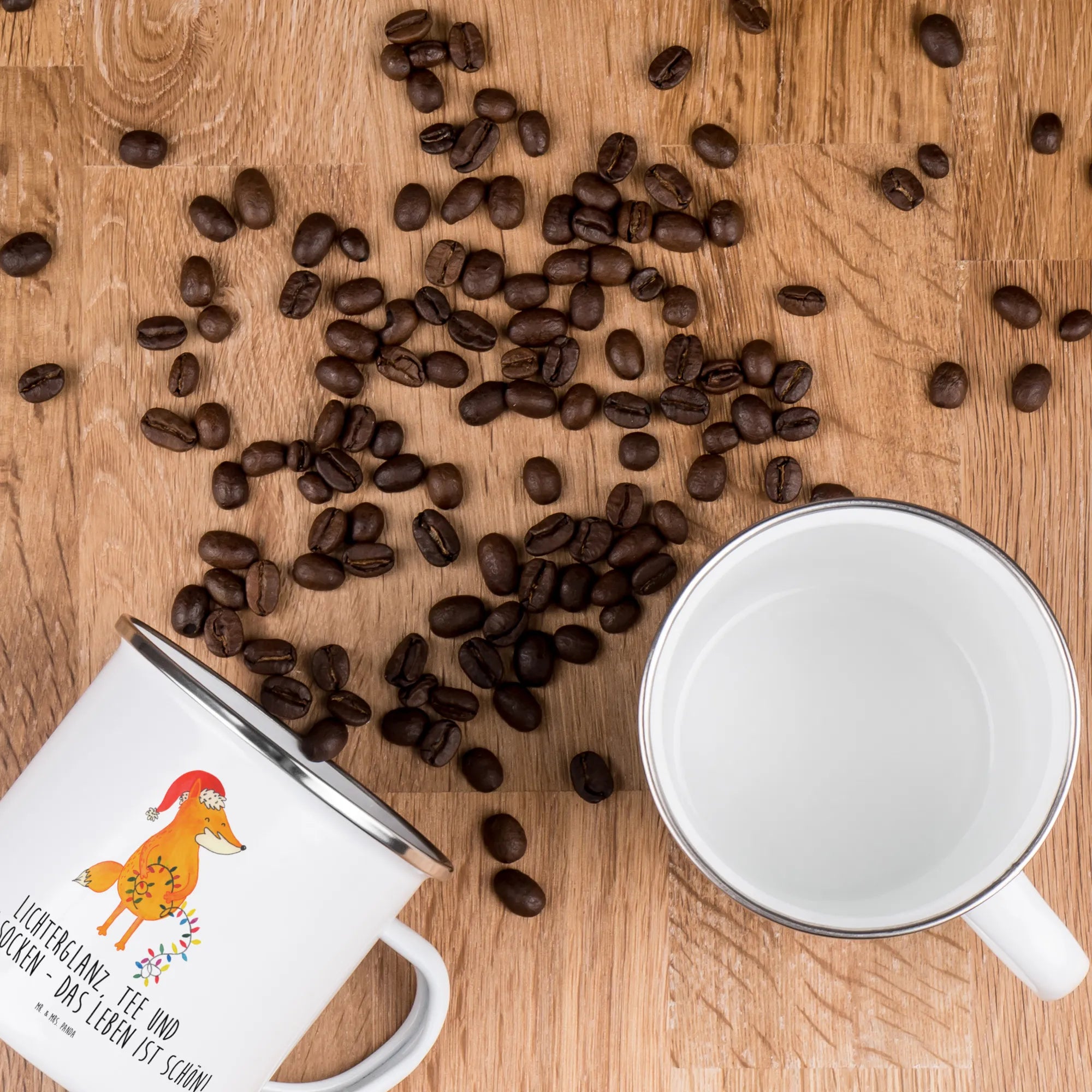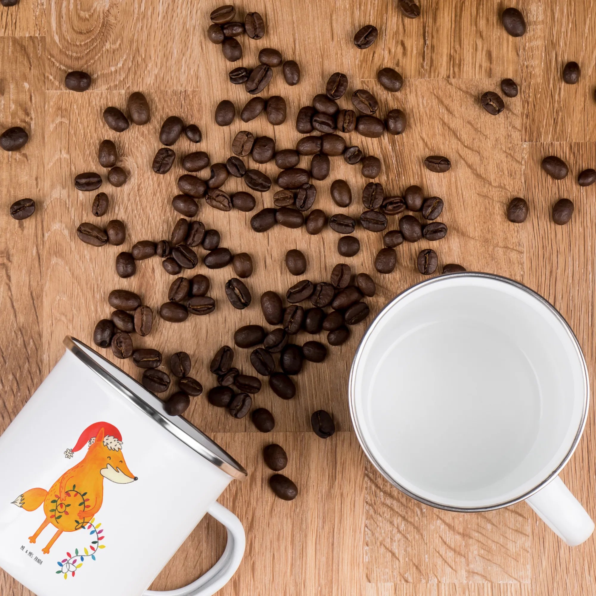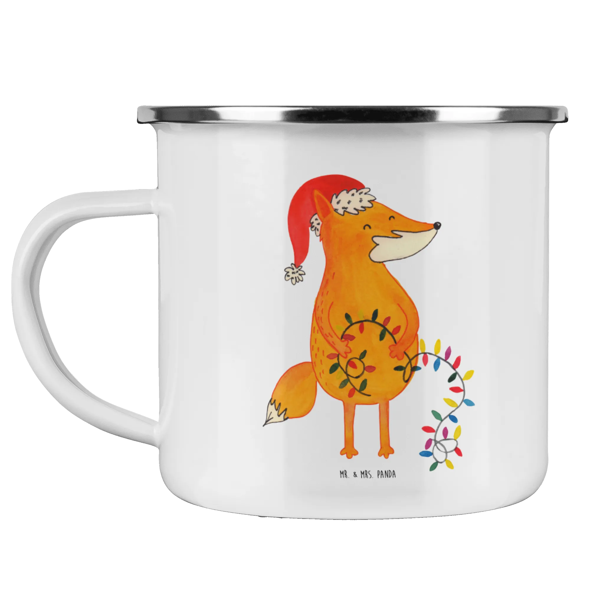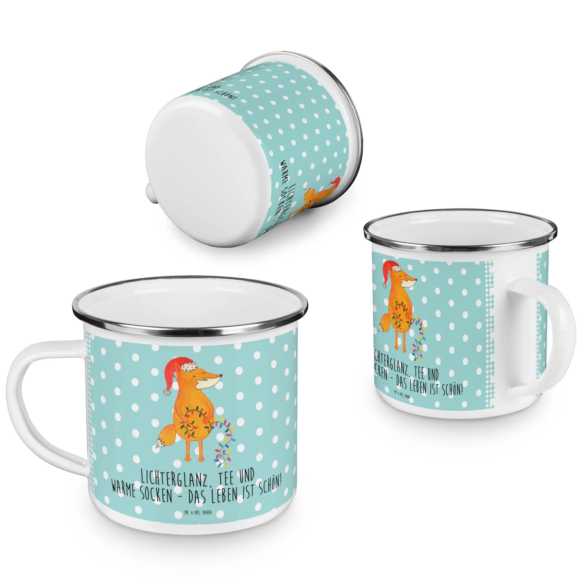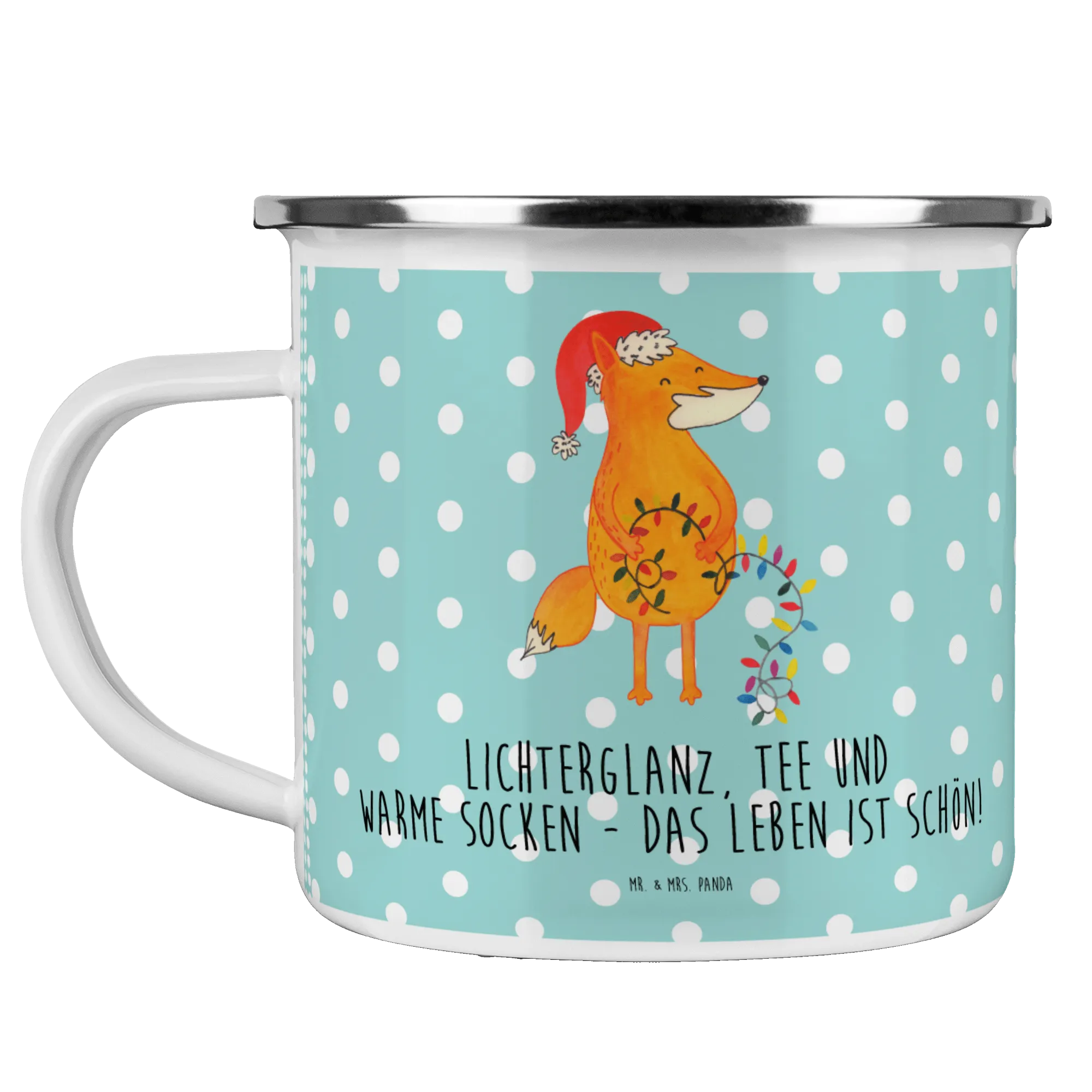 Kempingowy kubek emaliowany lis Boże Narodzenie - bez napisu - lodowoniebieski