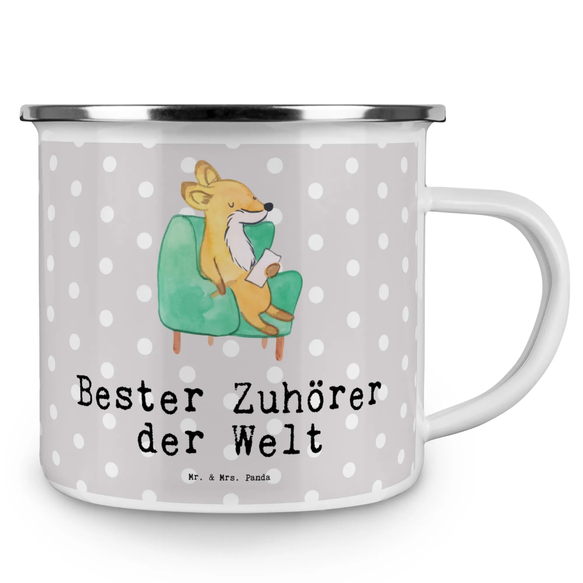 Kempingowy kubek emaliowany lis Najlepszy słuchacz na świecie - biały