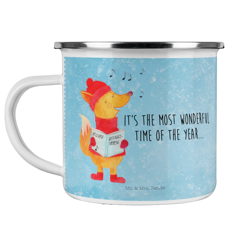 Kempingowy kubek emaliowany lis Śpiewak - z napisem - lodowoniebieski
