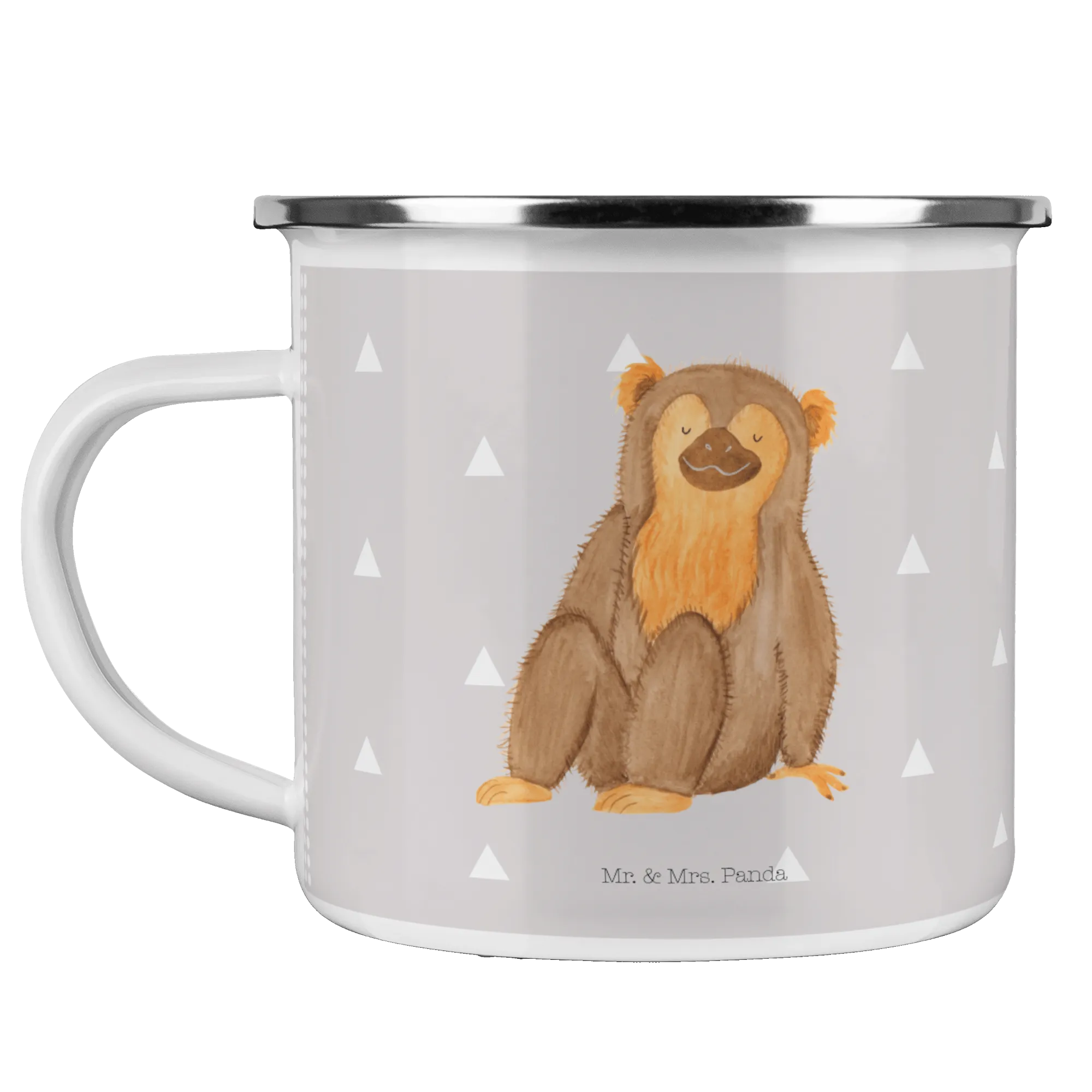 Kempingowy kubek emaliowany Małpa - z napisem - Biały