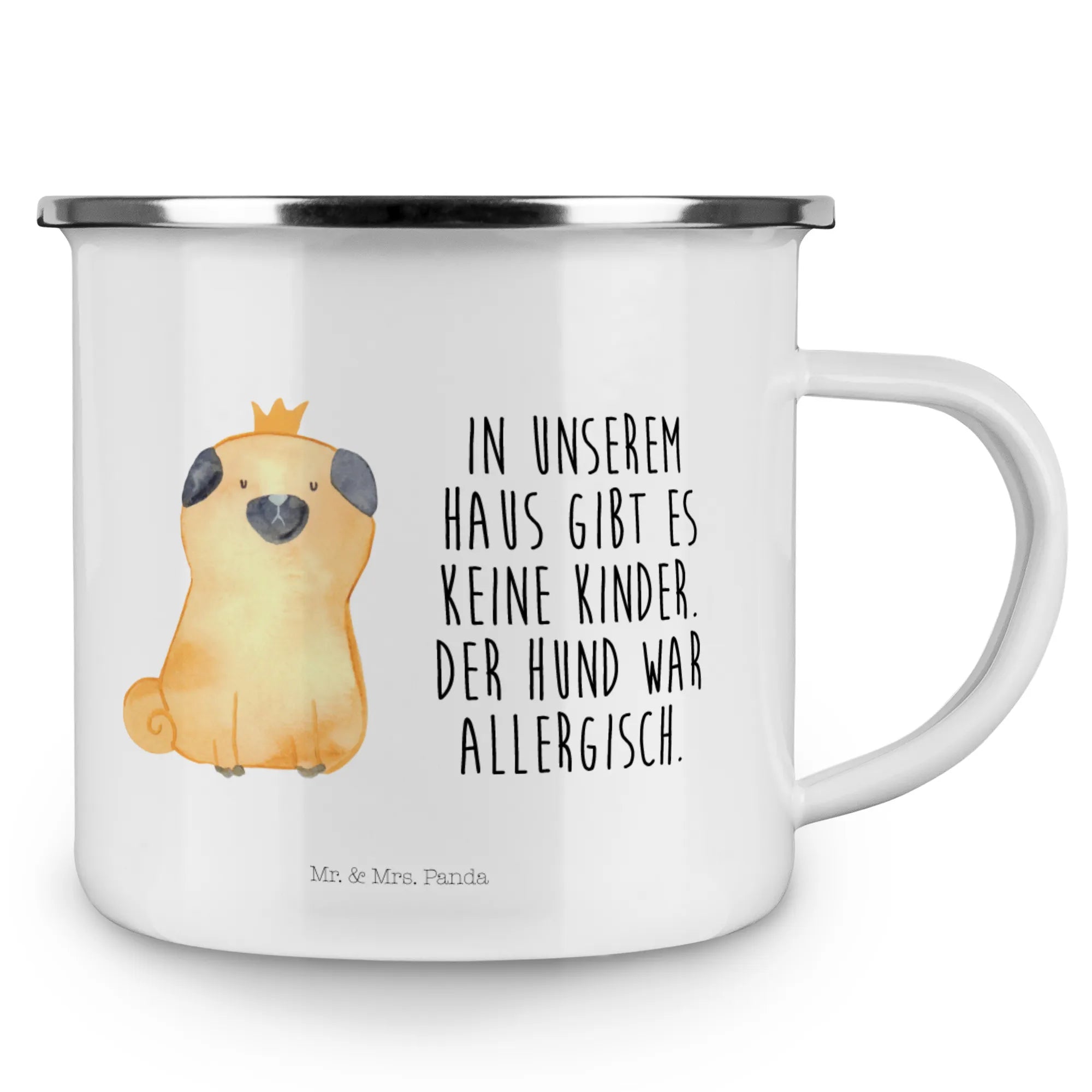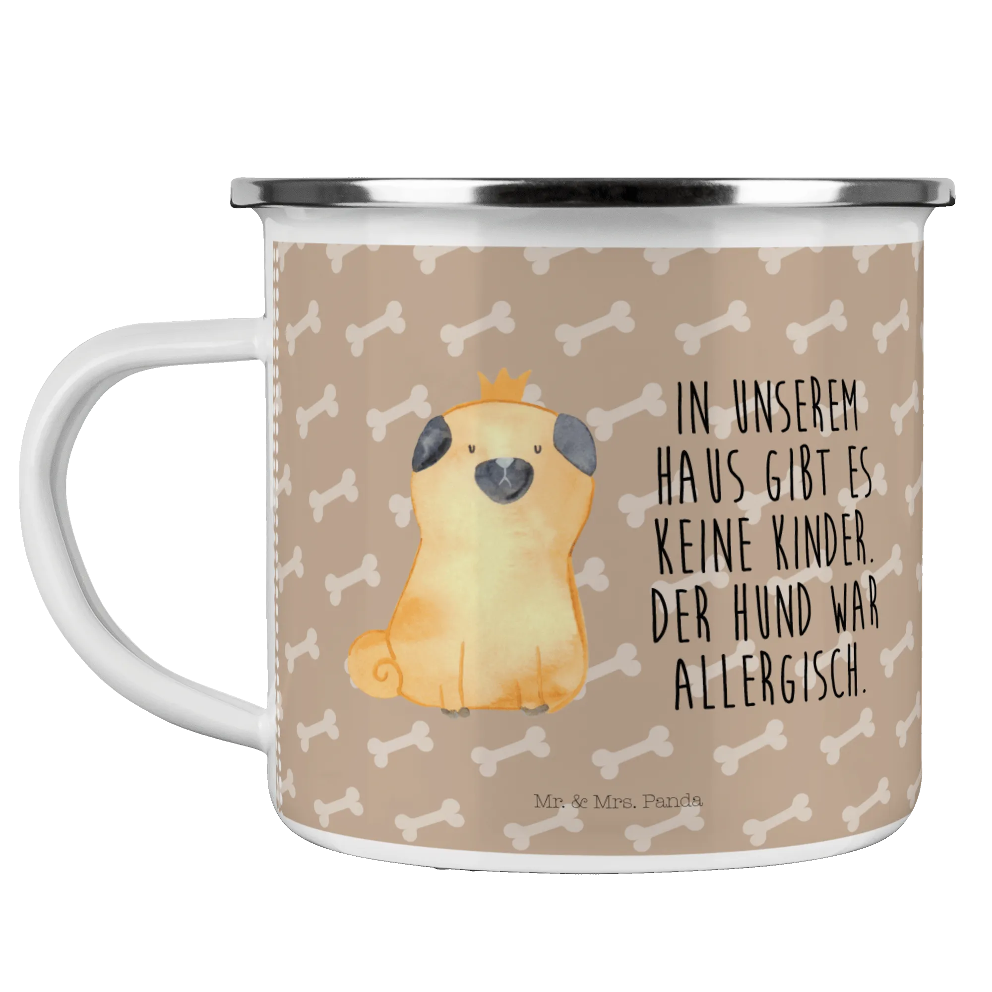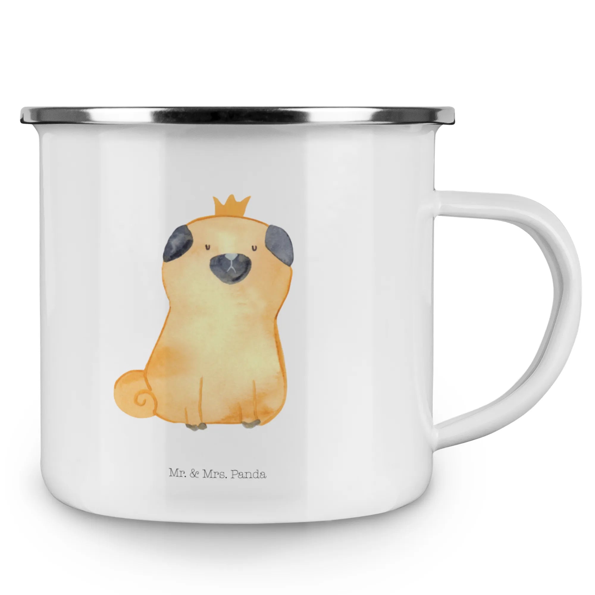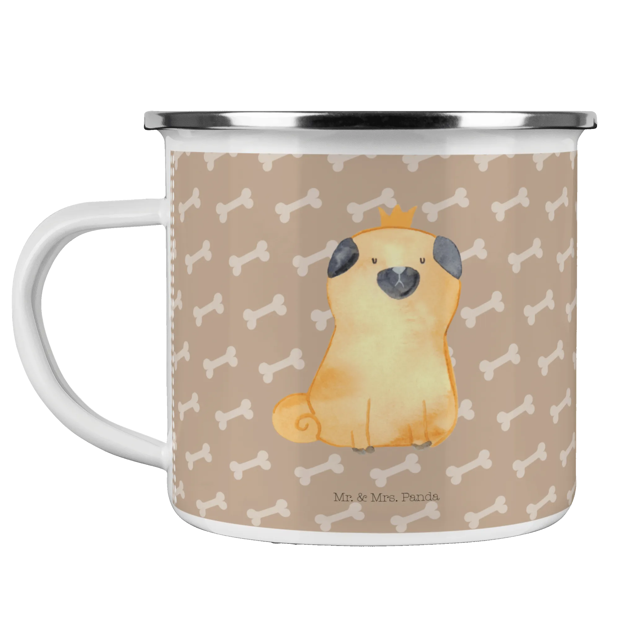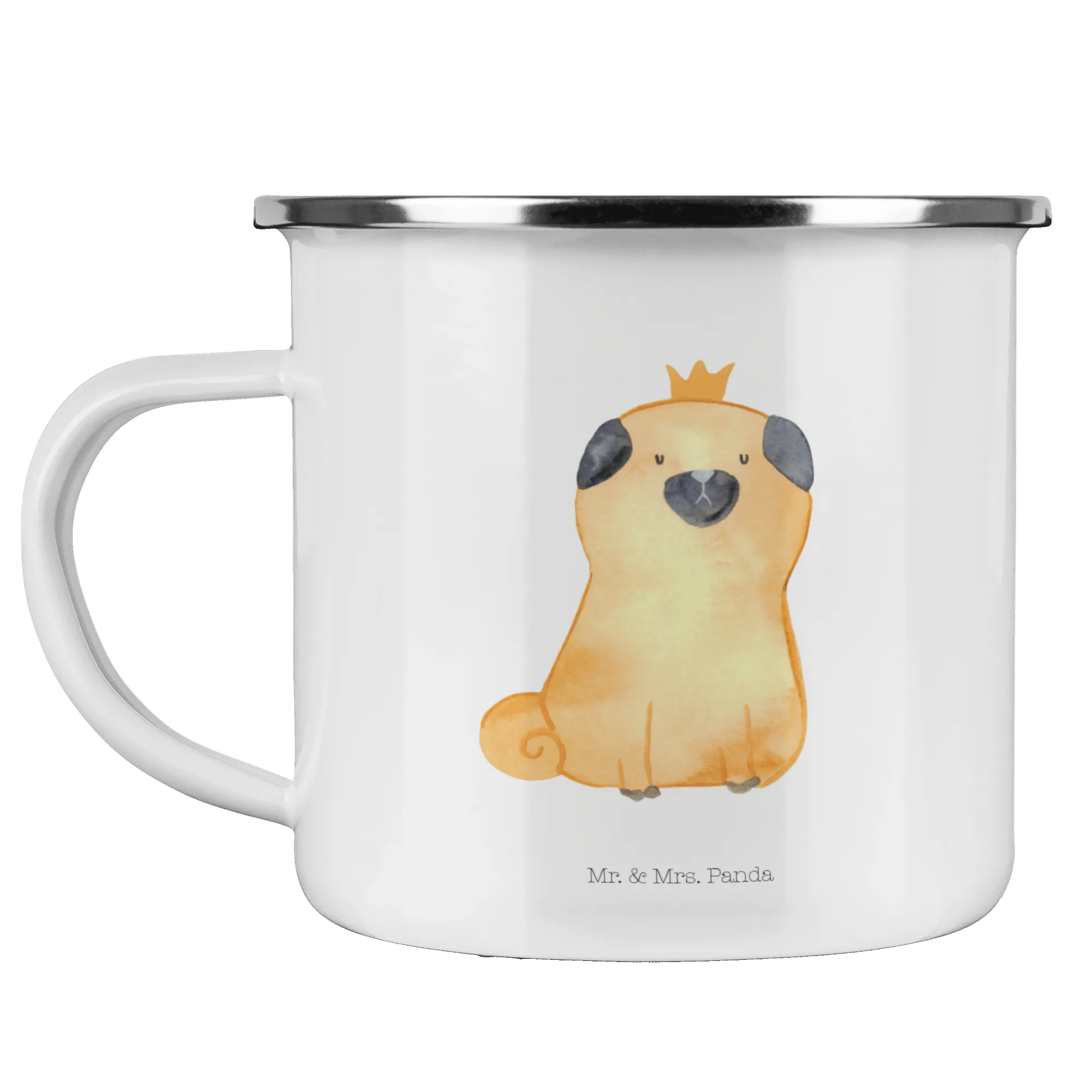 Kempingowy kubek emaliowany mops korona - z napisem - Hundeglück