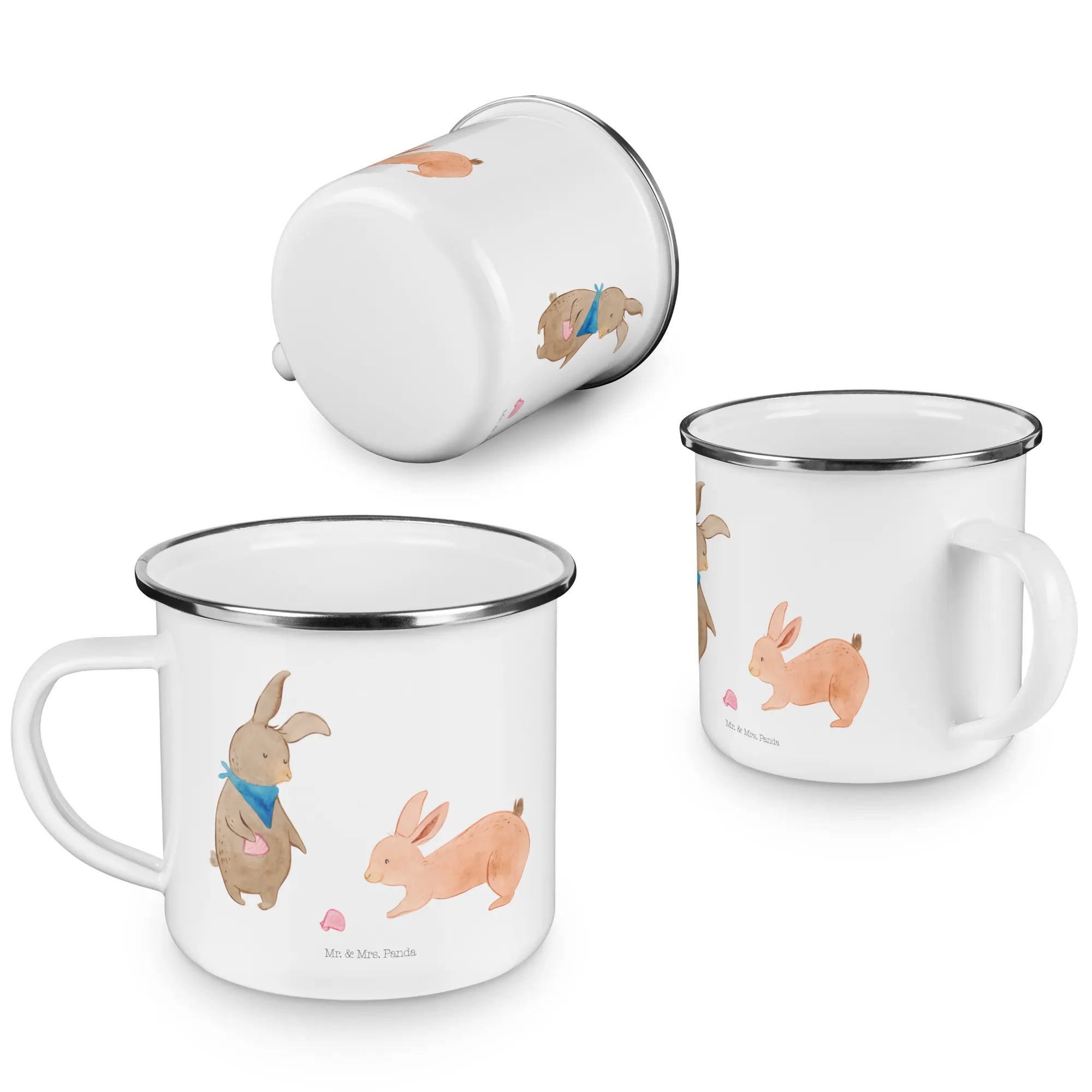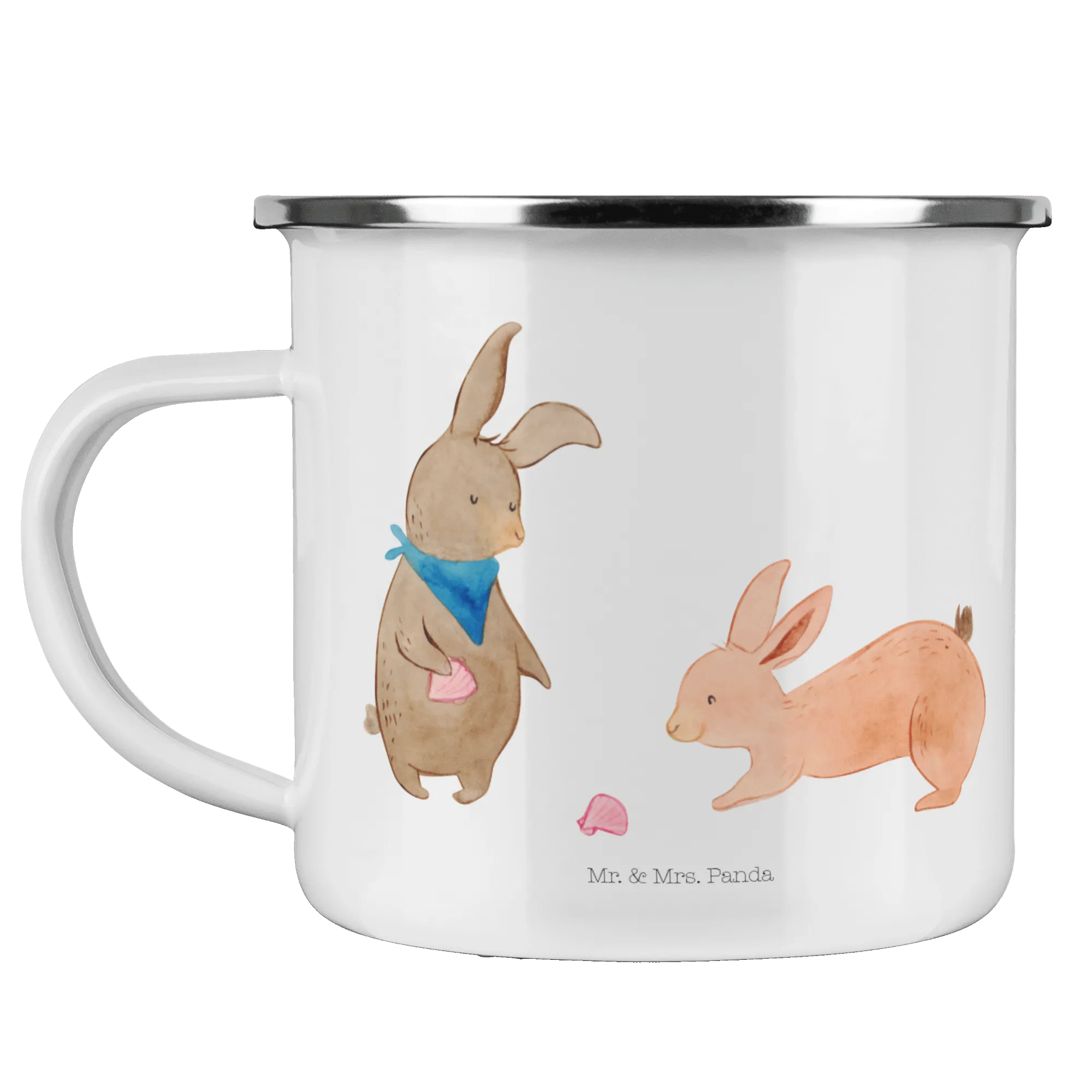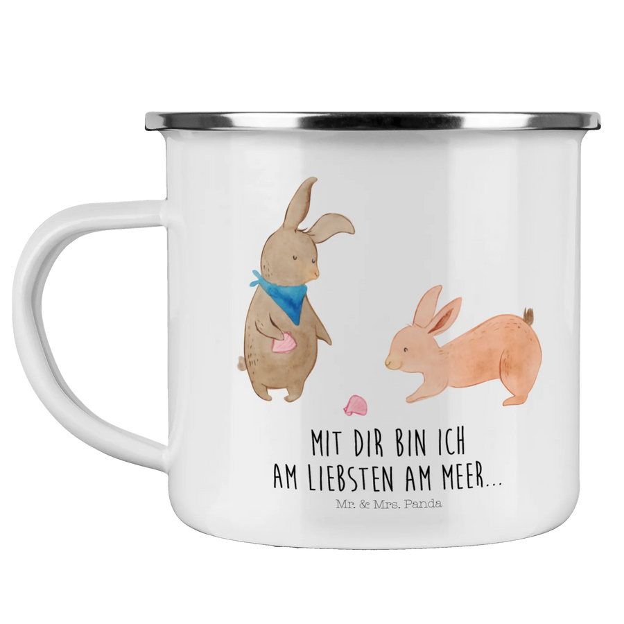 Kempingowy kubek emaliowany Muszla królików - z napisem - biały
