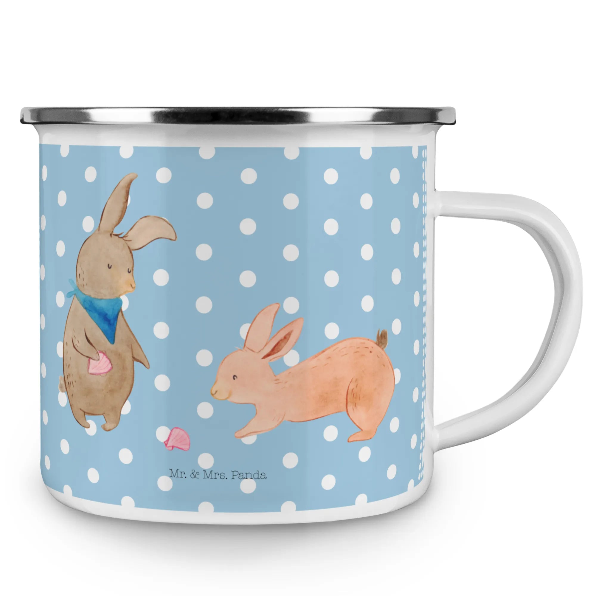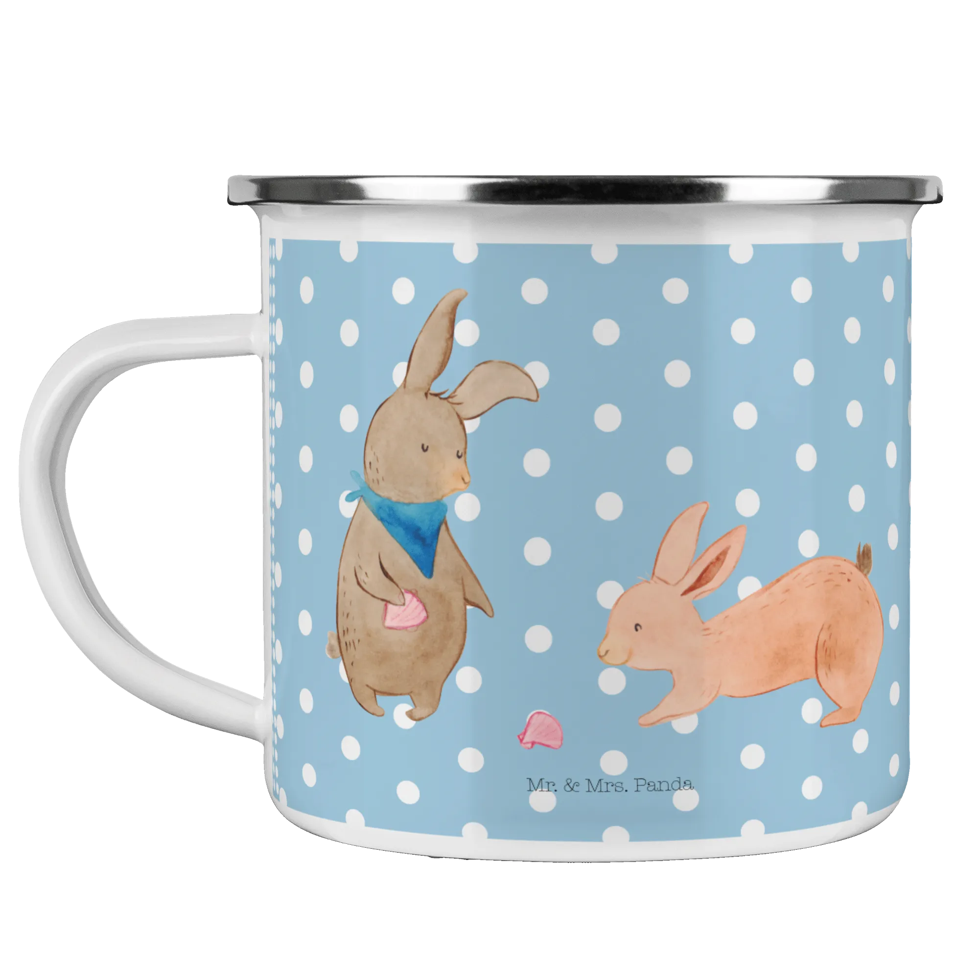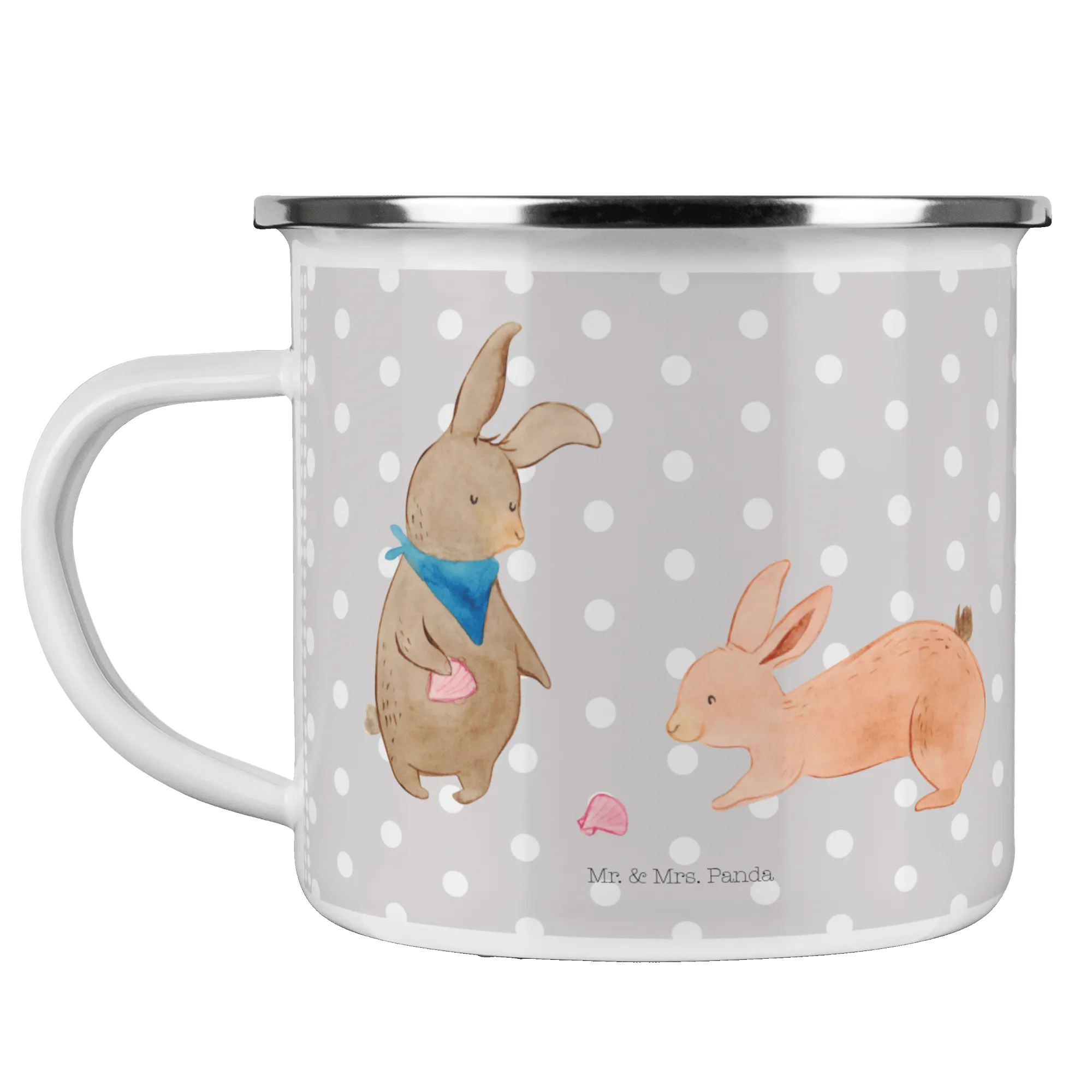 Kempingowy kubek emaliowany Muszla królików - z napisem - biały