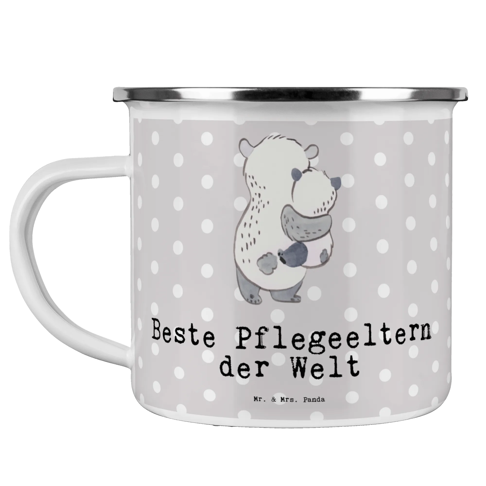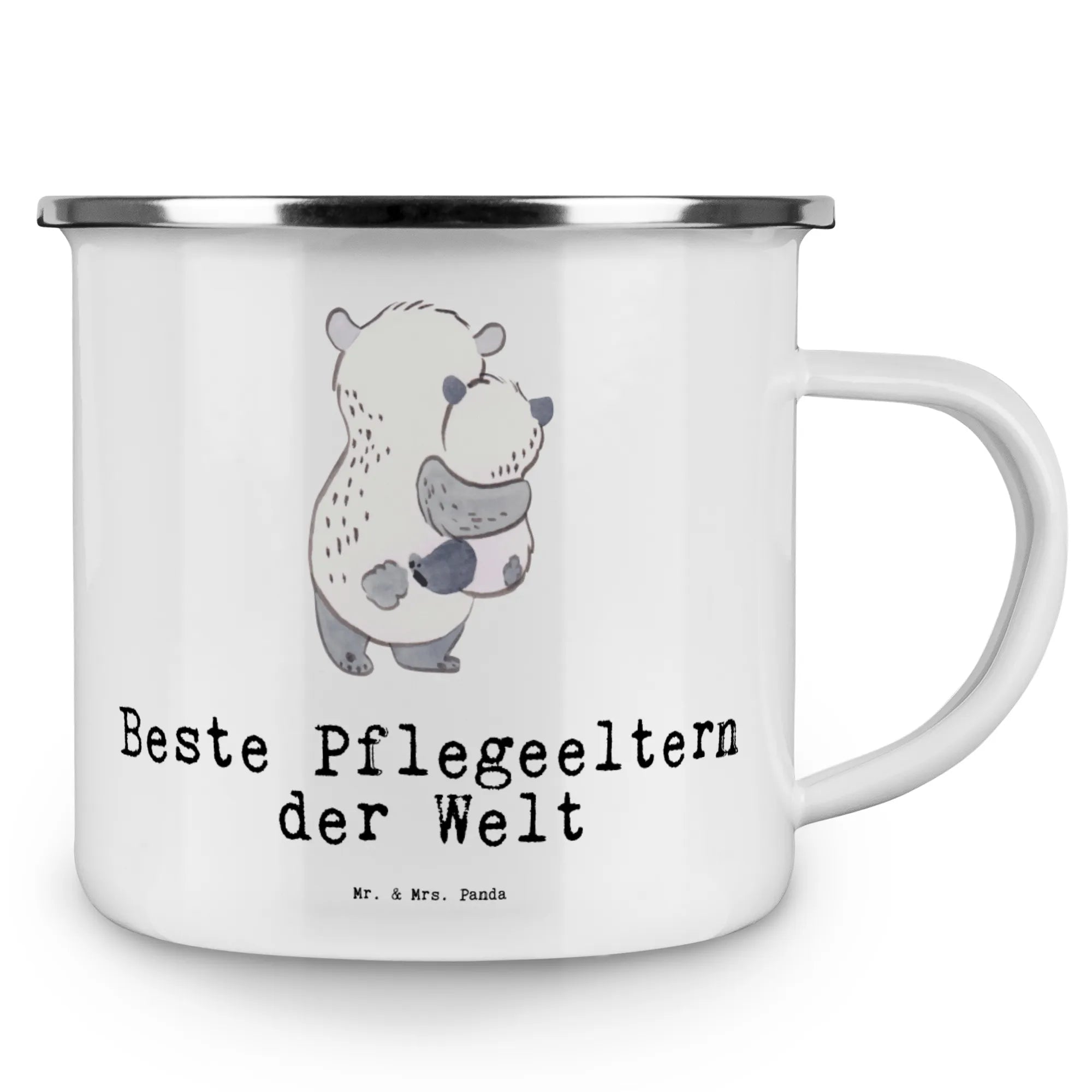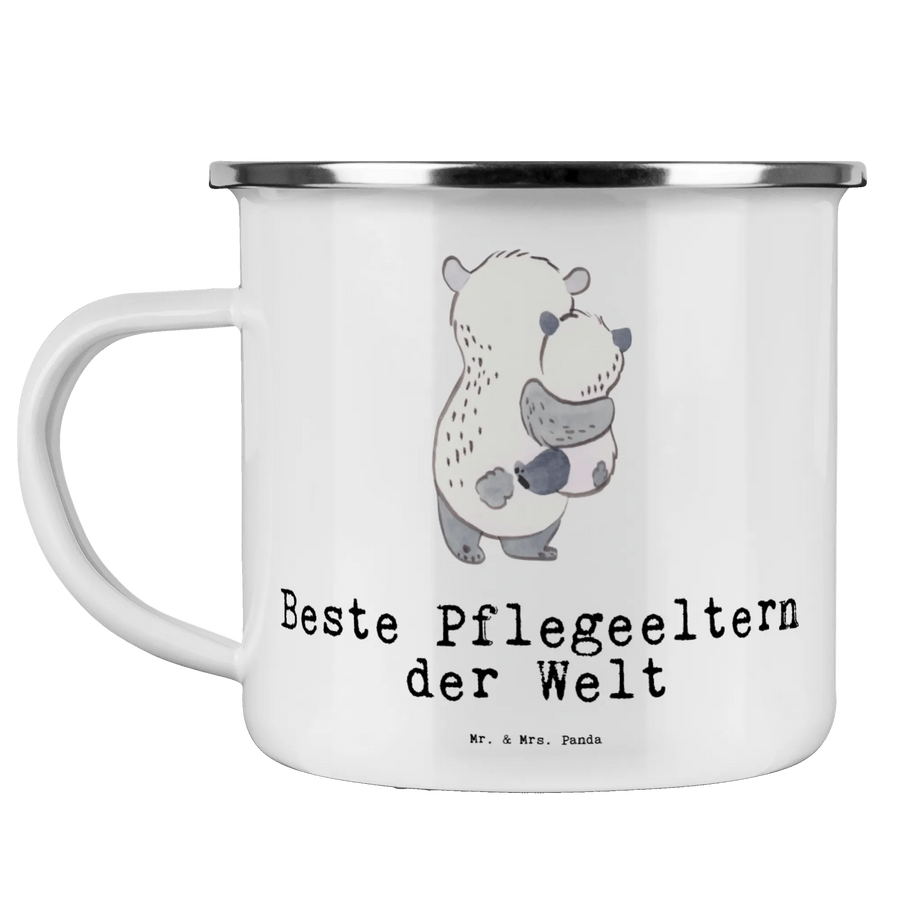 Kempingowy kubek emaliowany Panda Najlepsi rodzice zastępczy na świecie - Biały