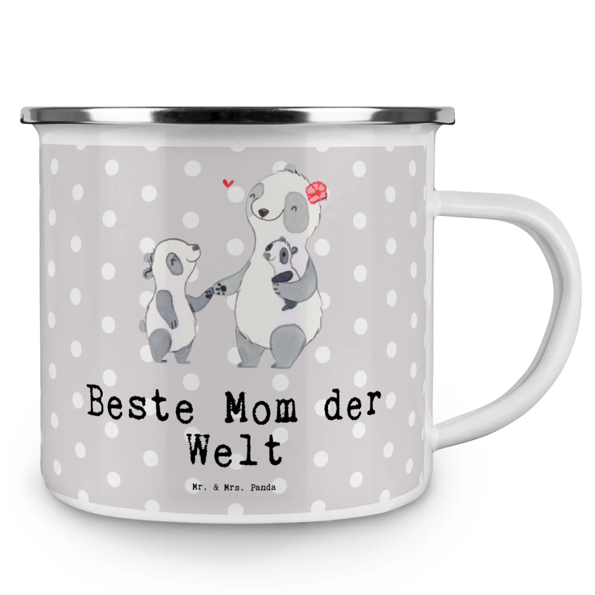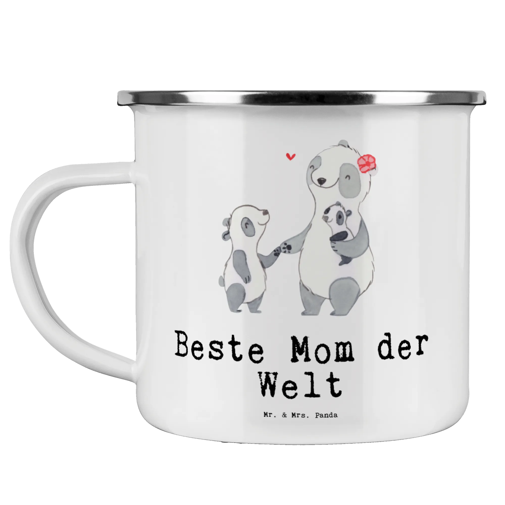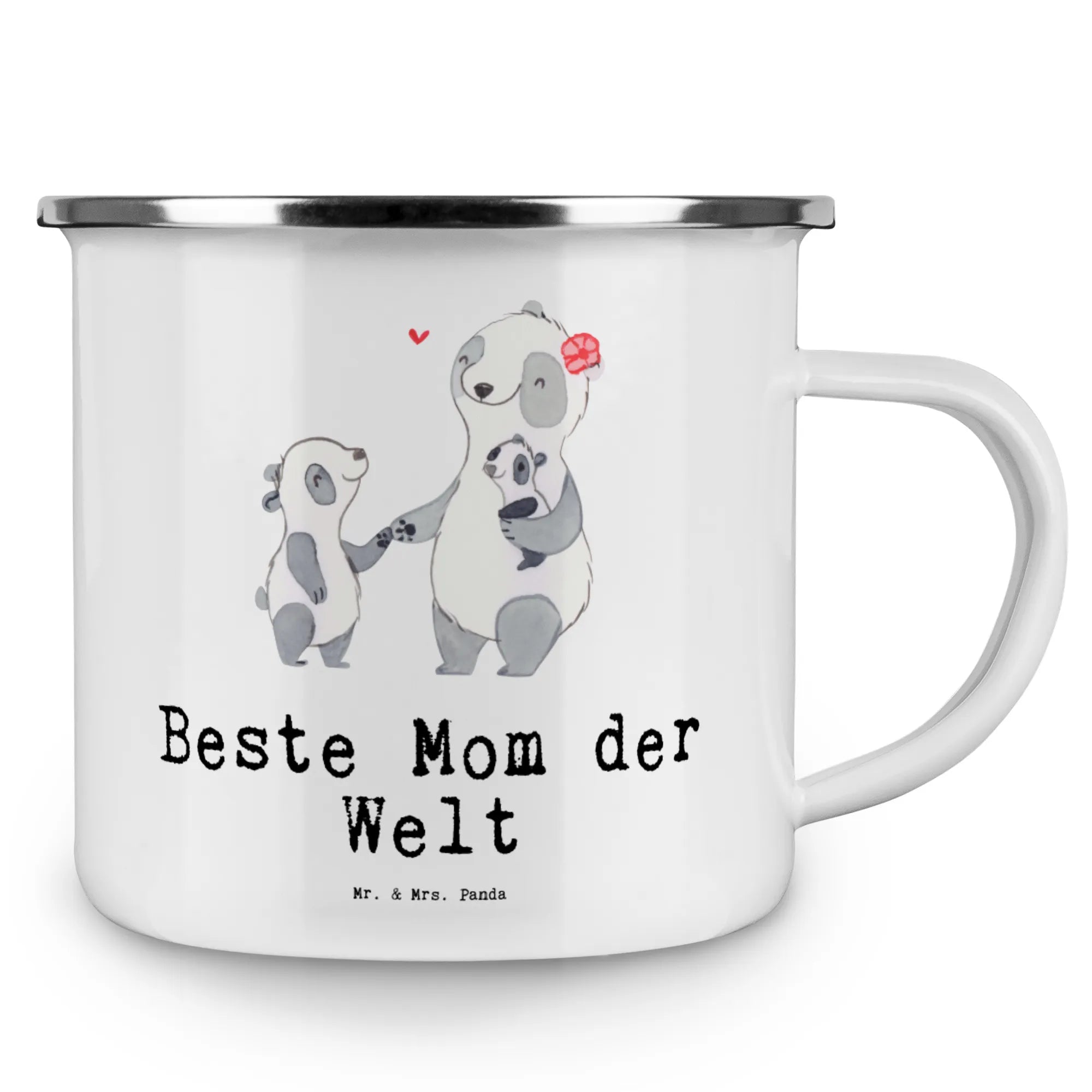 Kempingowy kubek emaliowany Panda Najlepsza mama na świecie - biały
