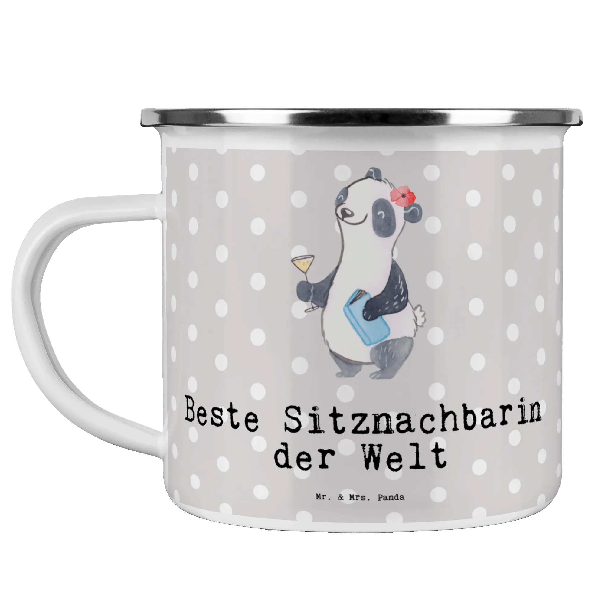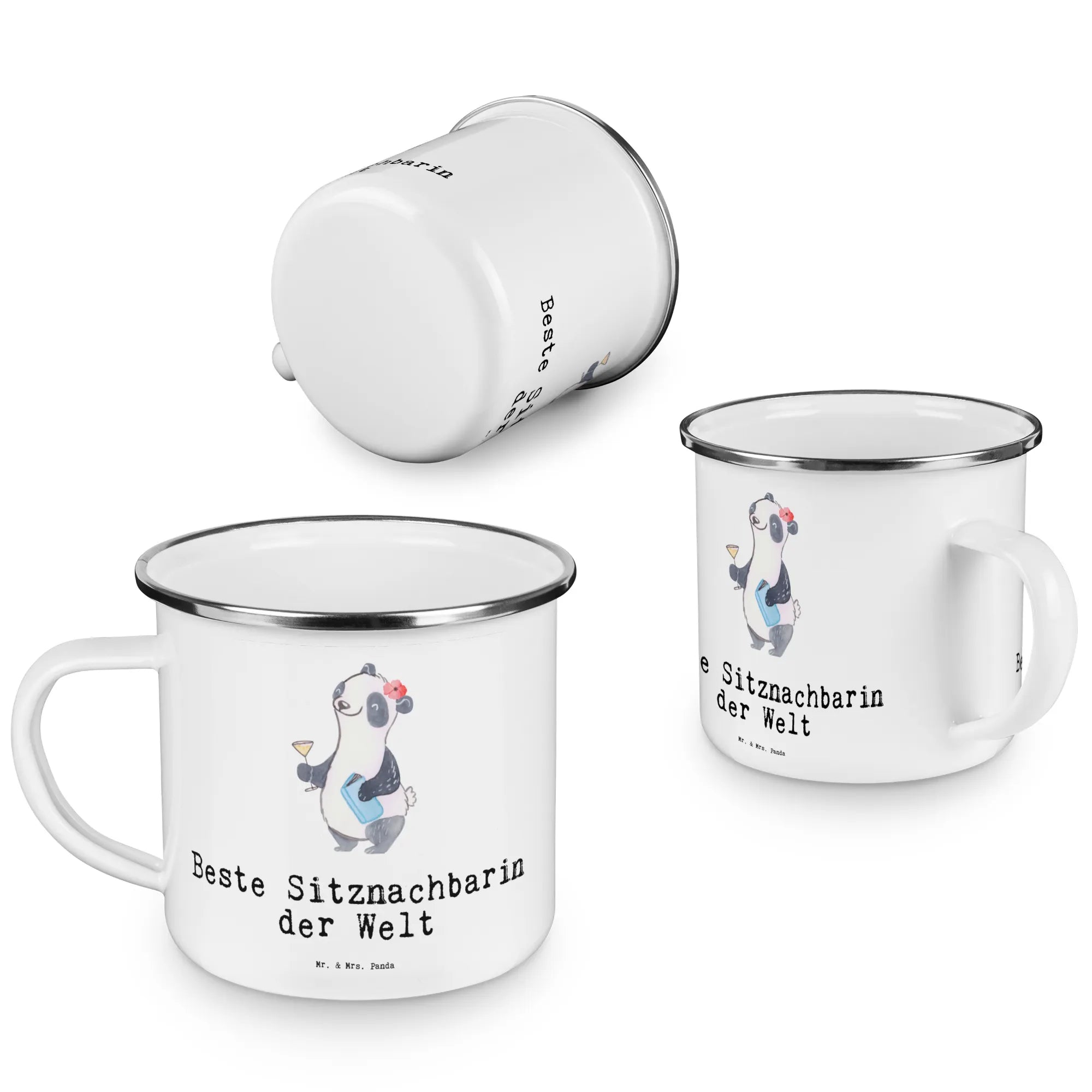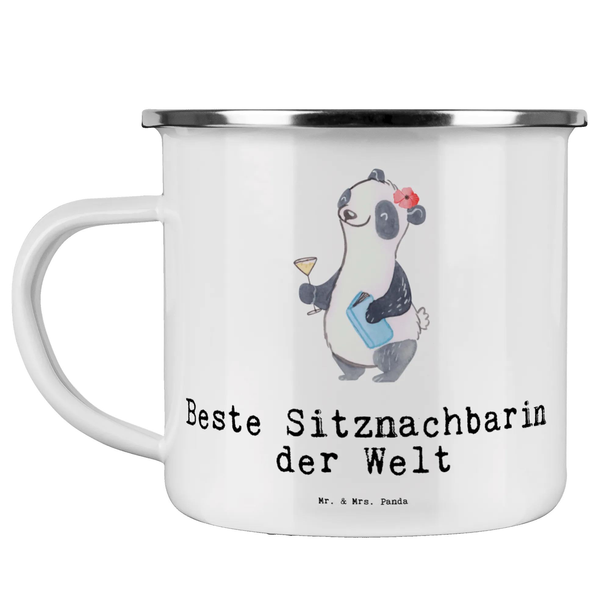 Kempingowy kubek emaliowany Panda Najlepsza sąsiadka na świecie - Biały