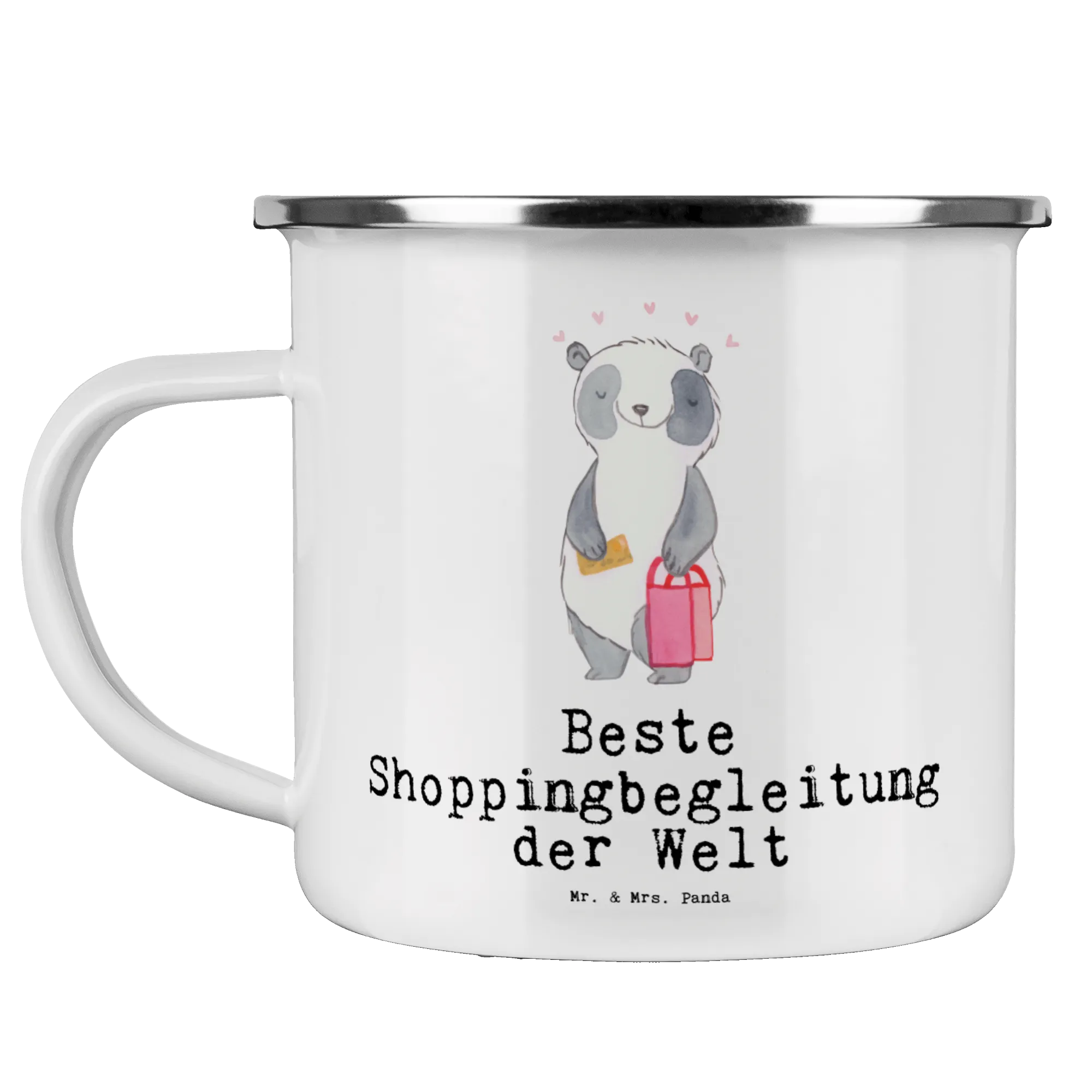Kempingowy kubek emaliowany Panda Najlepsza towarzyszka zakupów na świecie - biały