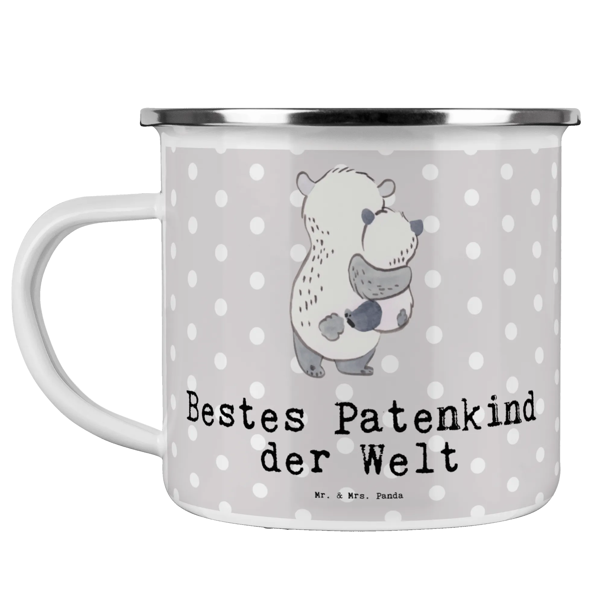 Kempingowy kubek emaliowany Panda Najlepsze dziecko chrzestne na świecie - Biały
