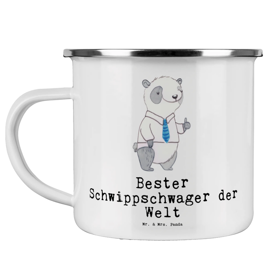 Kempingowy kubek emaliowany Panda Najlepszy szwagier na świecie - Biały