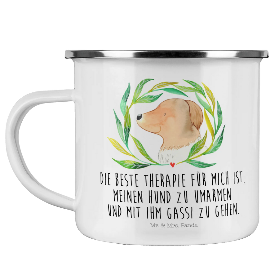 Kempingowy kubek emaliowany pies kwiaty - z napisem - Biały