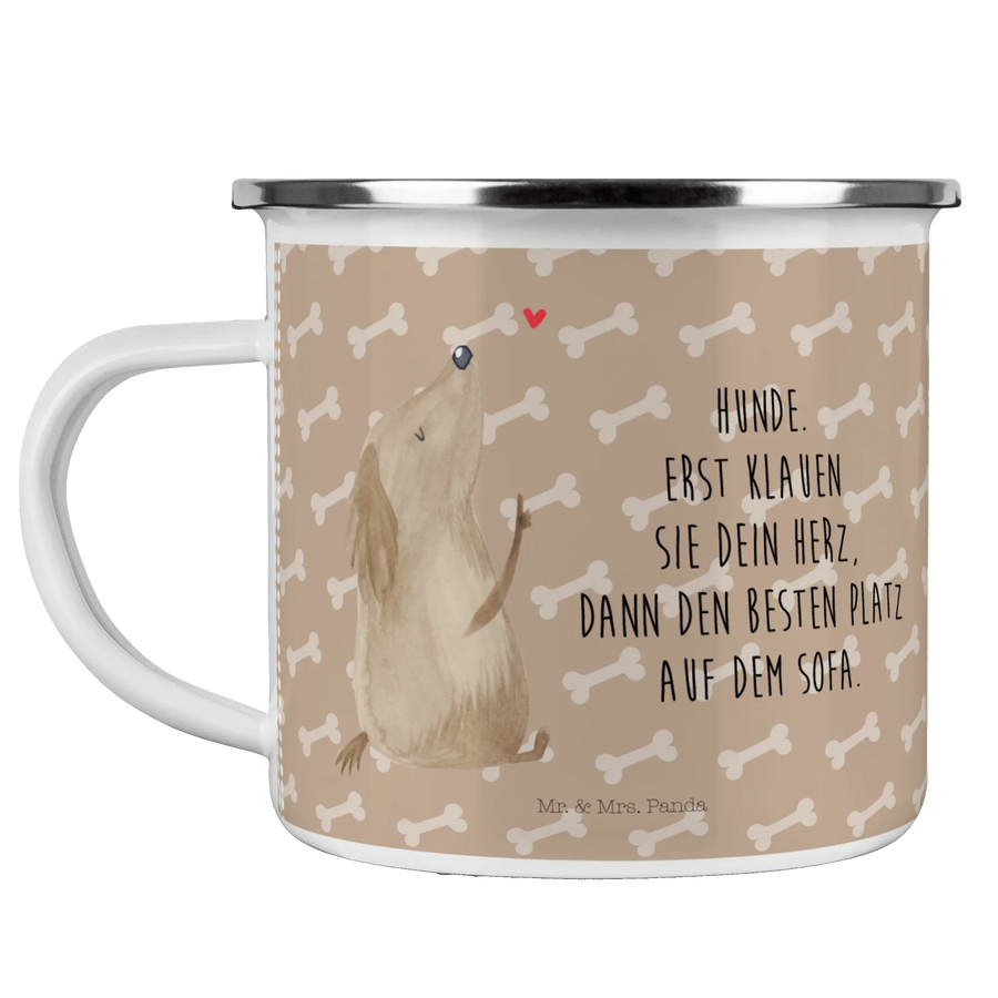 Kempingowy kubek emaliowany Pies miłość - z napisem - Hundeglück